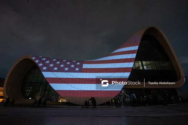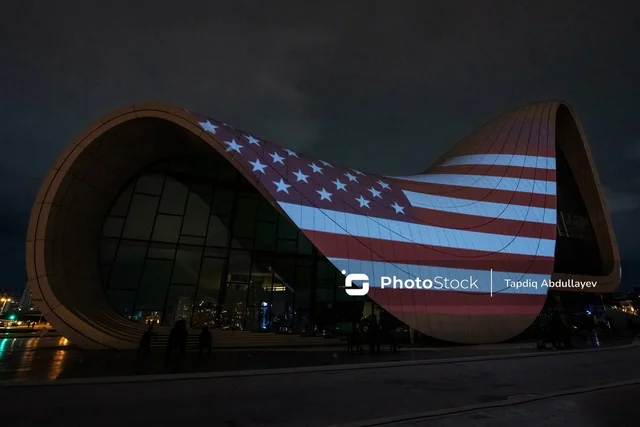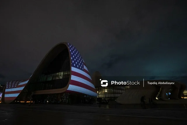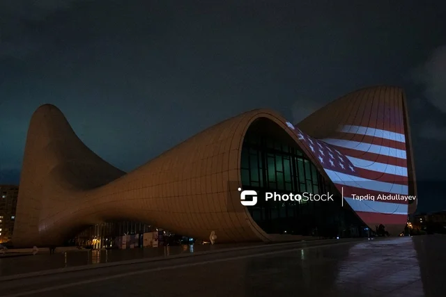 Heydər Əliyev Mərkəzi üzərində ABŞ bayrağı