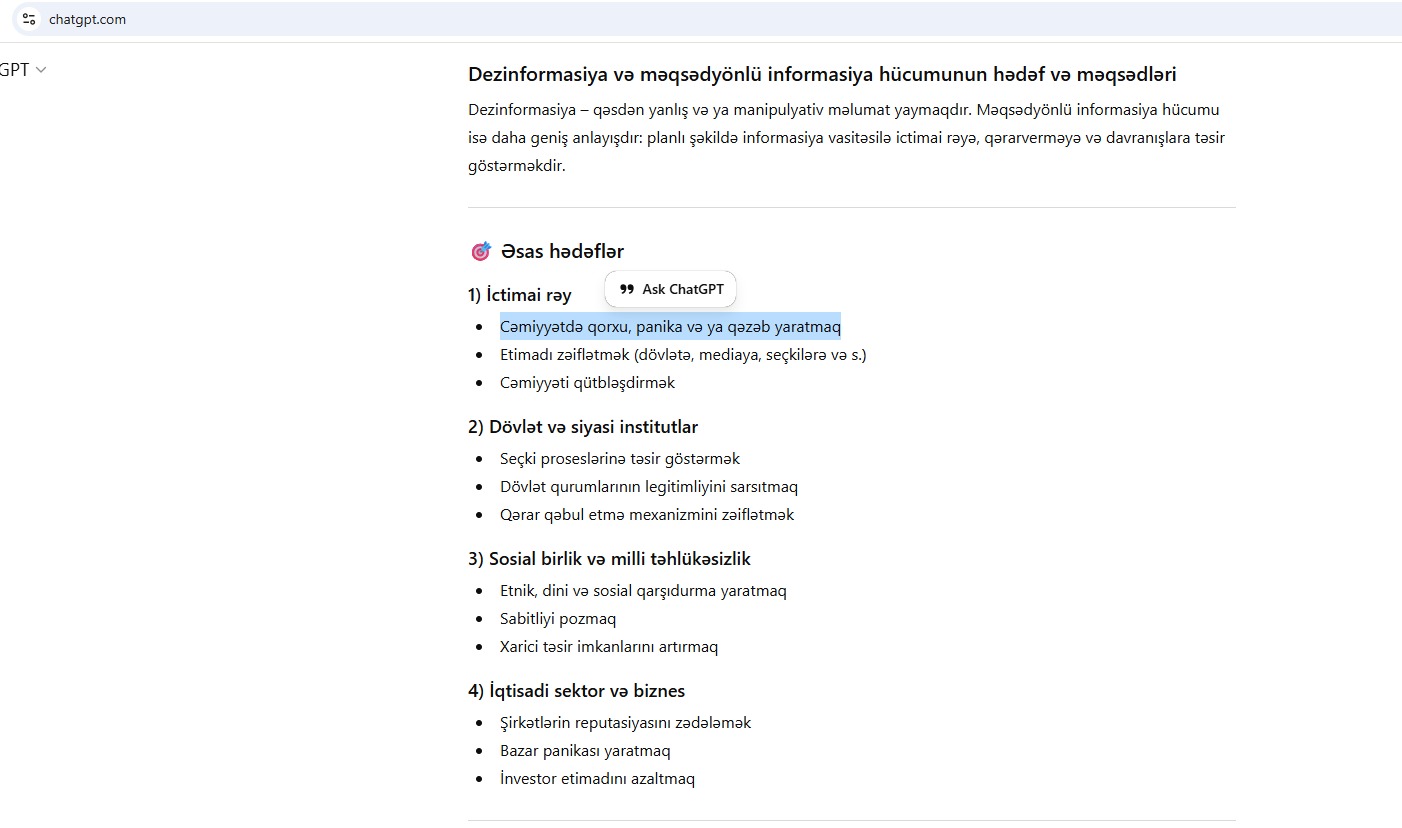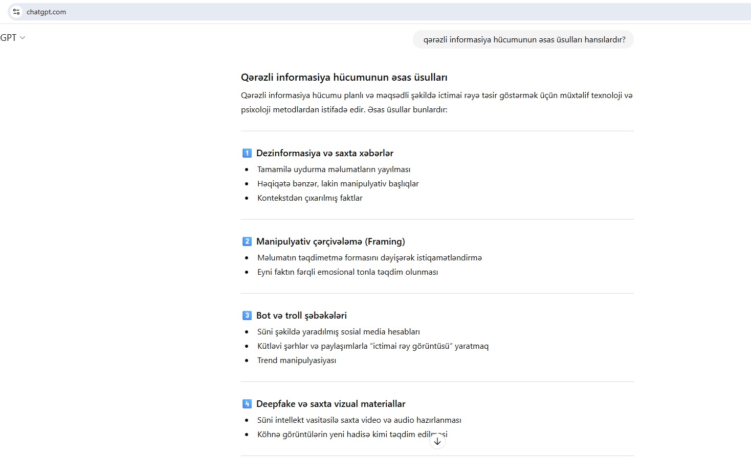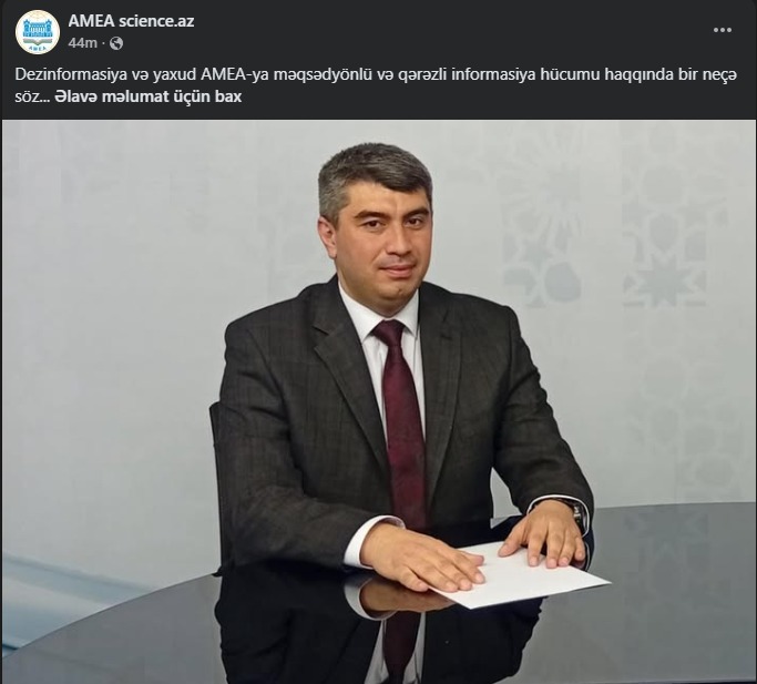 AMEA-nın Şərqşünaslıq İnstitutunun direktor müavini, fəlsəfə üzrə fəlsəfə doktoru, dosent Elnur Mustafayevin adından qurumun rəsmi saytında yayımlanan “Dezinformasiya və yaxud AMEA-ya məqsədyönlü və qərəzli informasiya hücumu haqqında bir neçə söz” sərlövhəli yazının süni intellekt vasitəsilə hazırlandığı məlum olub.