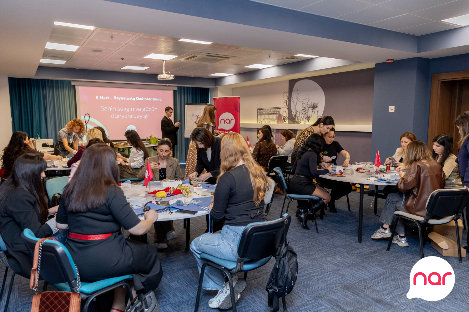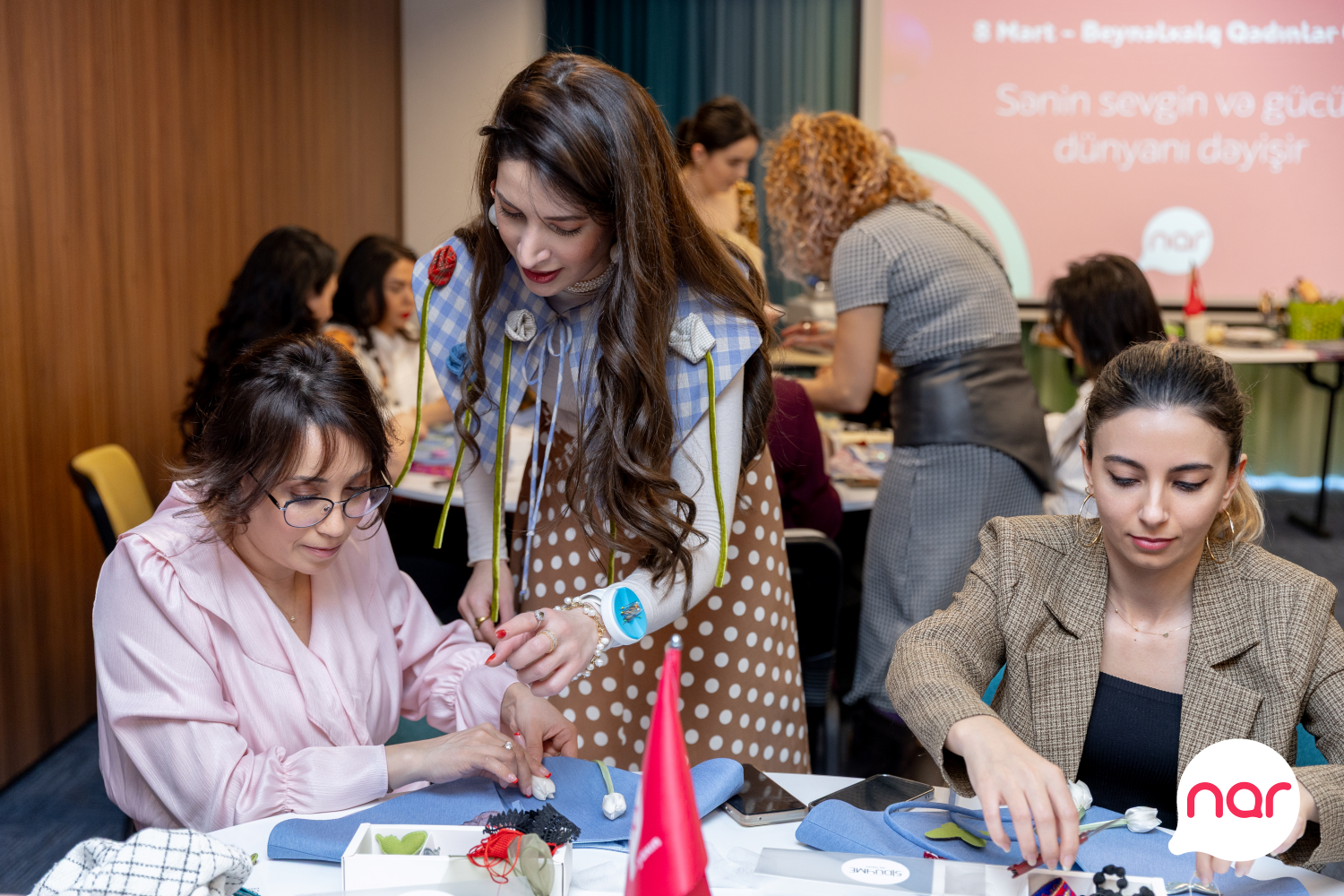 “Nar” 8 Mart – Beynəlxalq Qadınlar Günü münasibətilə xanım jurnalistlər üçün xüsusi tədbir təşkil edib. Media nümayəndələri üçün keçirilən incəsənət master-klassında iştirakçılar Azərbaycanın yerli brendinin təcrübəli təlimçilərinin dəstəyi ilə öz zövqlərini və fərdi üslublarını əks etdirən yaxalıqlar hazırlayıblar. Yaradıcılıq prosesi iştirakçılar üçün həm estetik təcrübə, həm də ünsiyyət və paylaşım imkanı yaradıb.