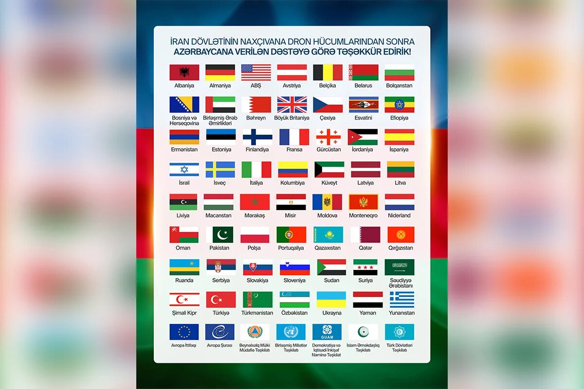 Publika.az 52 ölkə və səkkiz beynəlxalq təşkilatın İranın Naxçıvana dron hücumları ilə bağlı Azərbaycana dəstək mövqeyini təqdim edir: