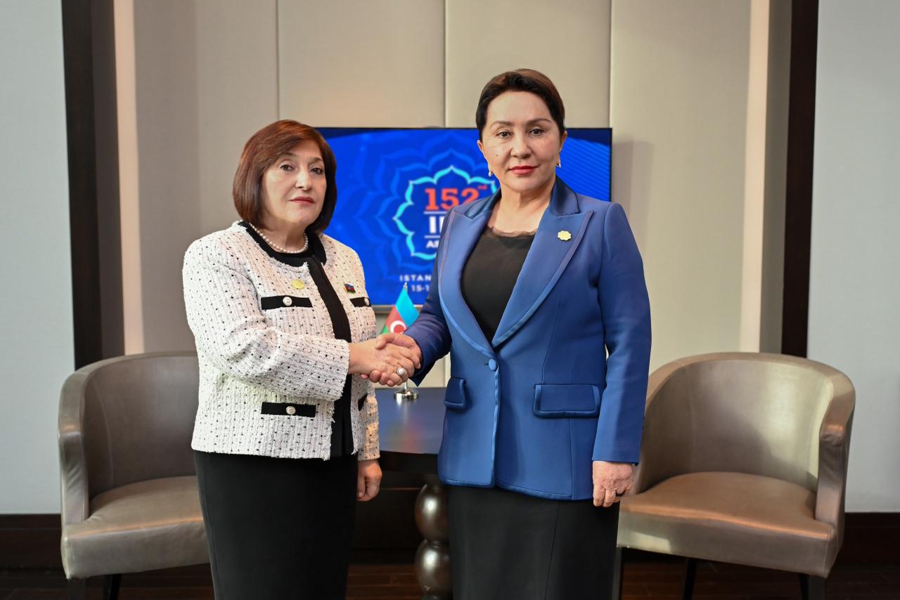 Milli Məclisin sədri Sahibə Qafarova Parlamentlərarası İttifaqın (PAİ) İstanbulda keçirilən 152-ci Assambleyası çərçivəsində Özbəkistan Respublikası Ali Məclisi Senatının sədri Tənzilə Narbayeva ilə görüşüb.