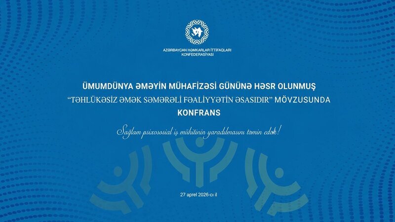 Azərbaycan Həmkarlar İttifaqları Konfederasiyası tərəfindən Səməd Vurğun adına Sağlamlıq Mərkəzində "Təhlükəsiz əmək səmərəli fəaliyyətin əsasıdır" mövzusunda konfrans təşkil edilib.