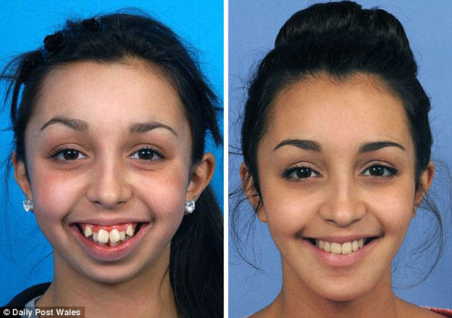 Publika.az “Daily Mail”-ə istinadən xəbər verir ki, 8 yaşından bəri çənəsi inkişaf etməyən Vuranın dişləri biçimsiz şəkildə uzanıb. Qızın ailəsi onun dişlərini yalnız 14 yaşında düzəltdirməyə nail olub. Çənəsində və üzündəki əyriliyi düzəlməsi üçün Vura düz 6 il müalicə alıb.