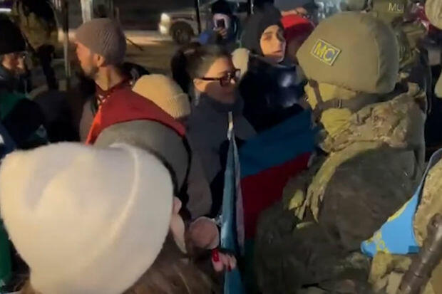 Publika.az xəbər verir ki, aksiya iştirakçıları sülhməramlıların qarşısında Azərbaycan xalq mahnısı olan “Sarı gəlin”i ifa ediblər.