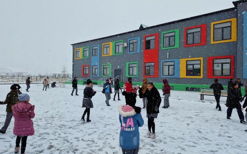 İşğaldan azad olunan Zəngilan rayonunun Ağalı kəndində məktəblilər ilk qar sevincini yaşayıb.