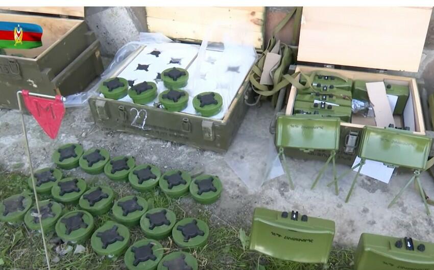 Müdafiə Nazirliyi Qarabağ bölgəsində aşkar edilmiş mühəndis döyüş sursatları anbarlarının görüntülərini yayıb.