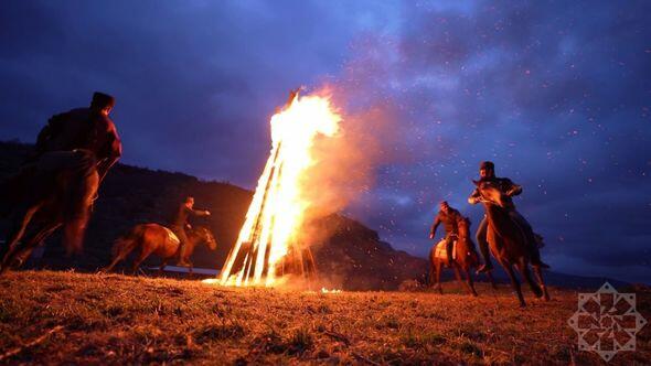 Qarabağ atları Malıbəylidə tonqal ətrafında dövrə vurdu - FOTO/VİDEO