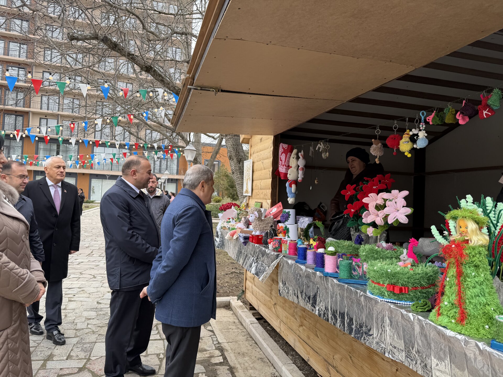 "Güllü bağ"da bayram yarmarkasında Şuşa sakinləri tərəfindən təamlar, Novruz şirniyyatları, əl işləri təqdim edilib.
