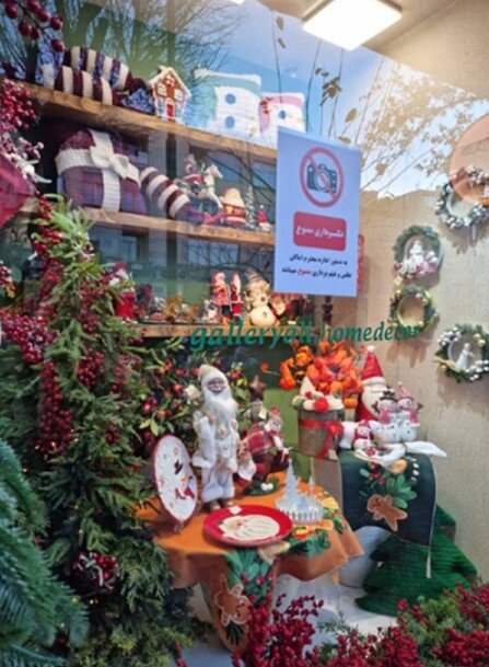 Tehranda Milad bayramı ilə əlaqəli əşyalar satan mağazanın fonunda, xüsusilə "Santa Klaus"la şəkil çəkdirməyə qadağa qoyulub.