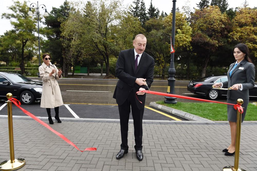 Dövlətimizin başçısı inzibati binanın rəmzi açılışını bildirən lenti kəsdi.