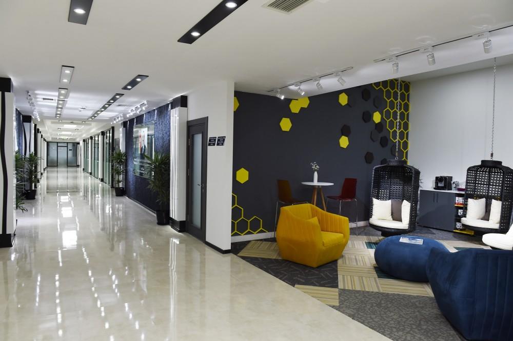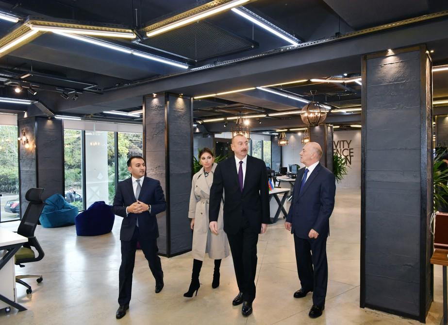 “İNNOLAND” İnkubasiya və Akselerasiya Mərkəzinin fəaliyyəti ilə tanış olan Prezident İlham Əliyevə məlumat verildi ki, “İNNOLAND” Azərbaycanda, eyni zamanda, onun hüdudlarından kənarda özəl sektorun inkişaf etdirilməsi, innovasiyanın təşviqi və startap hərəkatının genişləndirilməsi üçün yaradılan inkubasiya, akselerasiya və araşdırma mərkəzidir. İNNOLAND Kovörkinq, İnkubasiya, Akselerasiya və İT Təlim-Tədris Mərkəzindən ibarətdir. Buradakı “Kovörkinq” mərkəzi startaplar, proqramçılar, innovasiyalar sahəsində tək və ya kiçik komanda ilə işləyən şəxslər üçün sərfəli və bir çox imkanları özündə birləşdirən iş yeridir. “İNNOLAND”da fəaliyyət göstərəcək “Kovörkinq” mərkəzi həftənin 7 günü 24 saat giriş imkanına, yüksək sürətli internetə, vahid məlumat köşkünə, mentor dəstəyinə malikdir.