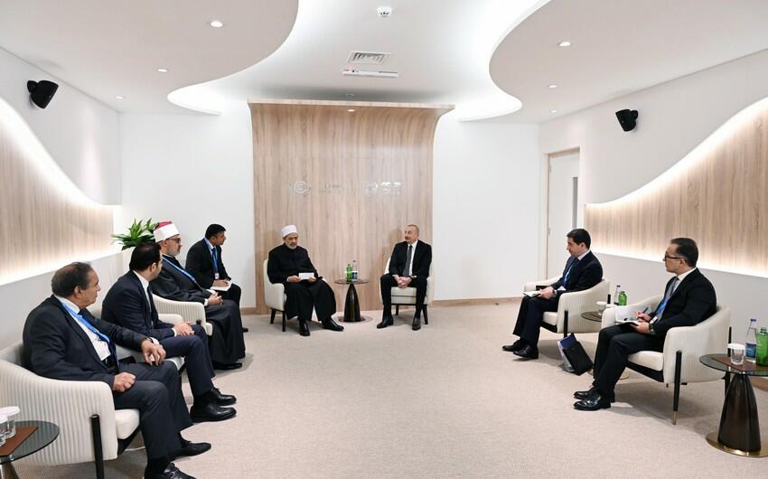 Dövlətimizin başçısı Misirə səfəri zamanı Əl-Əzhəri Şərifin şeyxi, böyük imam Əhməd Məhəmməd Əhməd Əl Tayyib ilə görüşünü məmnunluqla xatırlayaraq, həmin görüş zamanı bir sıra önəmli məsələlələrin müzakirə olunduğunu qeyd etdi və orada gələcək əməkdaşlıqla bağlı fikir mübadiləsinin aparıldığını vurğuladı.