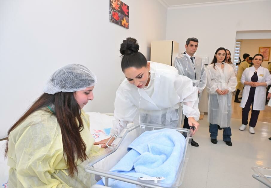 Martın 6-da Gəncəyə səfər çərçivəsində Birinci vitse-prezident, Heydər Əliyev Fondunun prezidenti Mehriban Əliyeva, qızları Leyla Əliyeva və Arzu Əliyeva Gəncə Şəhər Birləşmiş Xəstəxanasının Perinatal Mərkəzində olublar.