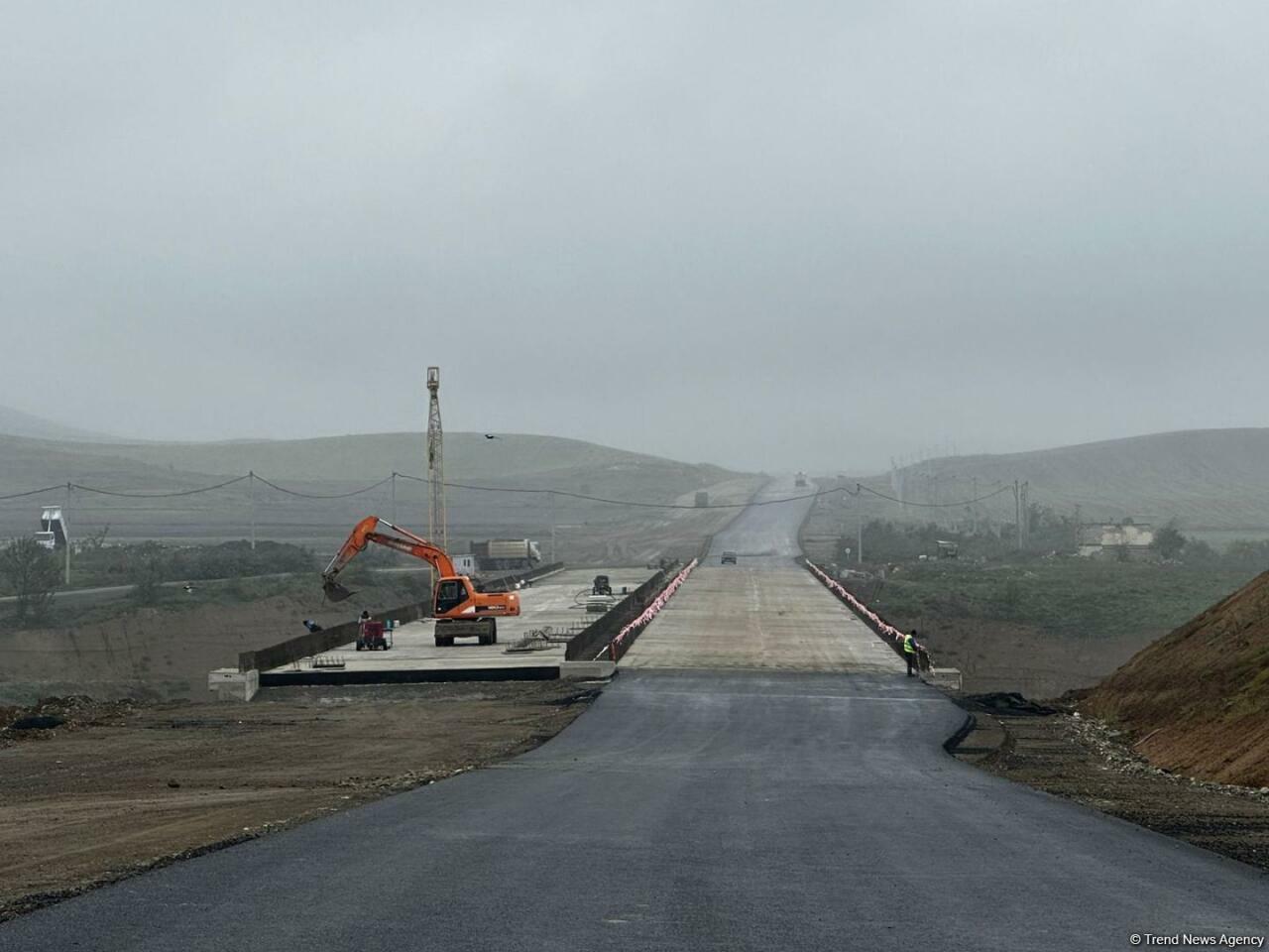 "Uzunluğu 64,8 kilometr, hərəkət hissəsinin eni 15 metr təşkil edəcək yol 4 hərəkət zolaqlı olmaqla, birinci texniki dərəcəyə uyğun inşa edilir. Hazırda yolda torpaq işlərinin icrası çərçivəsində yararsız süxurun çıxarılması, qazma, yatağın genişləndirilməsi işləri davam etdirilir. Həmçinin yol boyunca suların ötürülməsini təmin etmək məqsədilə müxtəlif ölçülü suötürücü borular, su keçidləri, zəruri olan yerlərdə yeraltı və kommunikasiya xətləri üçün nəzərdə tutulan ehtiyat keçidlərinin tikintisi aparılır. Yol üzərində 5 ədəd körpü və 2 ədəd yolötrücü layihələndirilib. Artıq 2 ədəd körpünün və 1 ədəd yolötrücünün tikintisi başa çatıb. Digərlərinin tikintisi davam etdirilir. Artıq yol əsasının inşası bitən hissələrdə asfalt-beton örtüyün döşənməsi işləridə görülür", - deyə F. Qədirov əlavə edib.