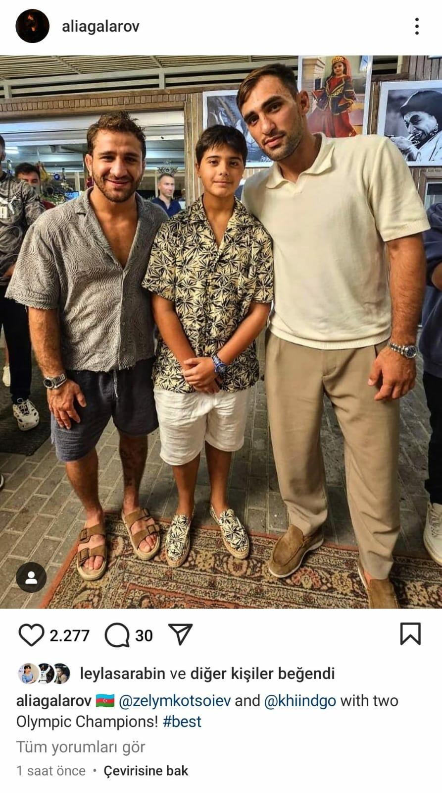 Xalq artisti Emin Ağalarovun əkiz övladları Mikayıl və Əli Olimpiya çempionlarımız Hidayət Heydərov və Zelim Kotsayevlə görüşüblər.