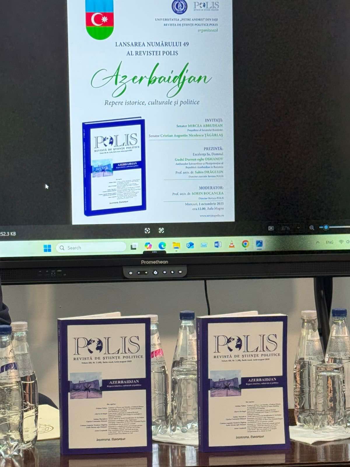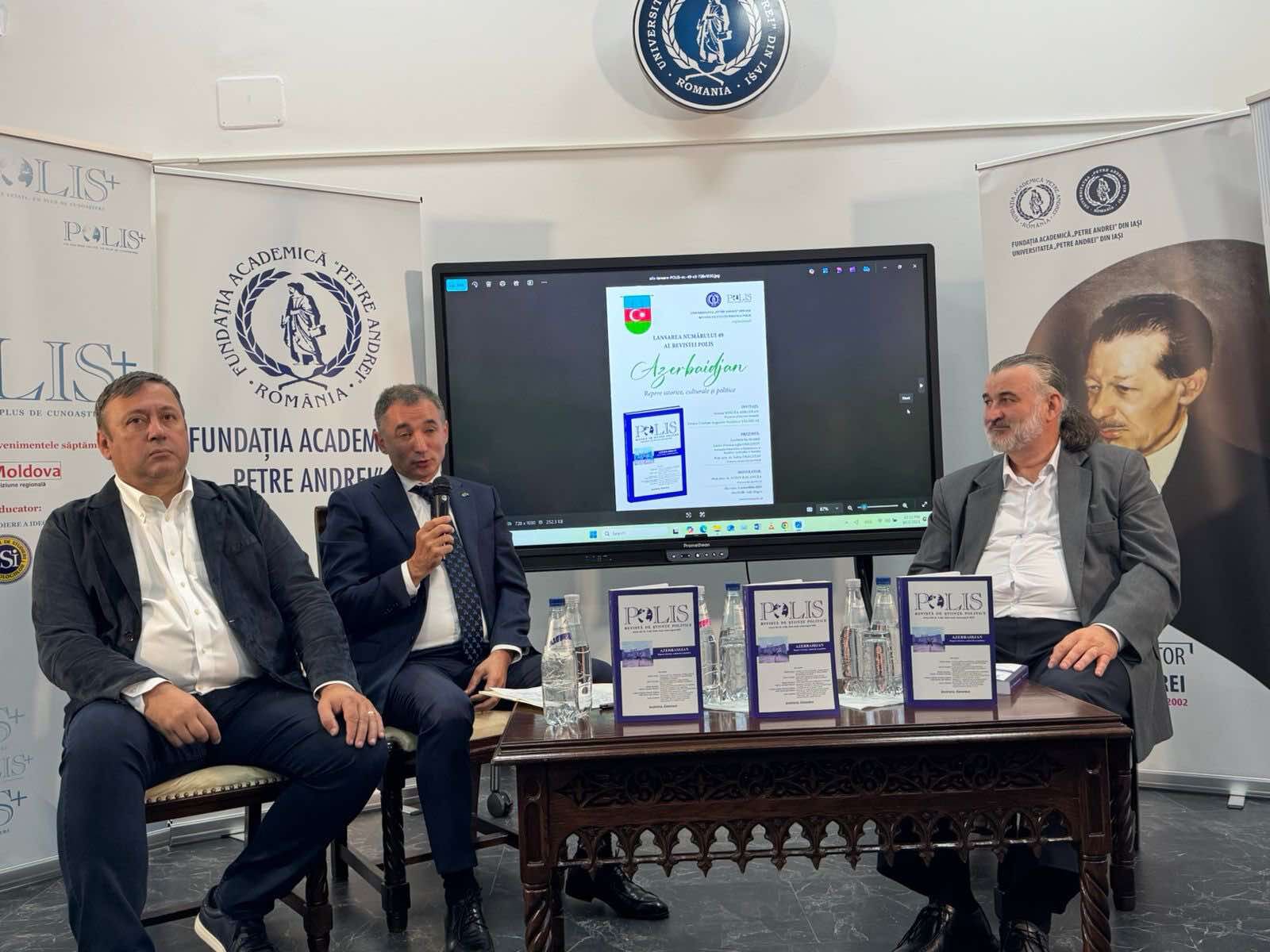 1 oktyabrda Rumıniyanın Yassı şəhərinin “Petre Andrei” Universitetində tarix, mədəniyyət və siyasəti əks etdirən “POLİS” elmi jurnalının Azərbaycana həsr olunmuş xüsusi nəşrinin təqdimatı keçirilib.