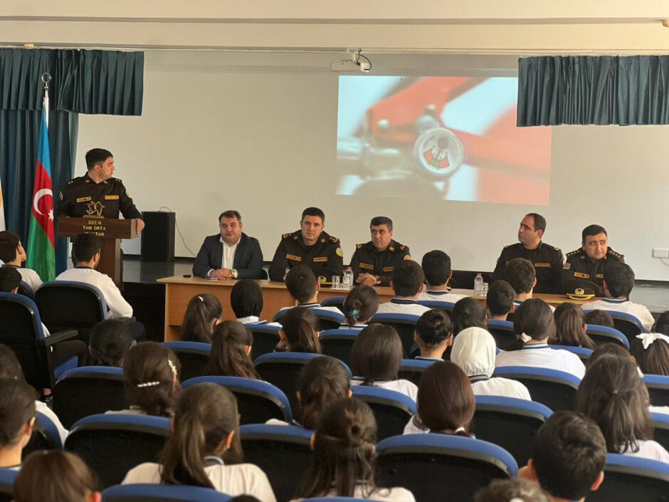 Belə ki, FHN-in Dövlət Yanğın Nəzarəti, Kiçikhəcmli Gəmilərə Nəzarət və Sularda Xilasetmə Dövlət xidmətlərinin mütəxəssislərinin də iştirakı ilə Bakı Regional Mərkəzi (RM) tərəfindən Bakı şəhərinin Xəzər rayon 262, Nizami rayon 312, Binəqədi rayon 246, Pirallahı rayon 186 və 243 nömrəli orta məktəblərində, Sumqayıt RM tərəfindən Abşeron rayonunda yerləşən Hökməli Ailə Sağlamlıq Mərkəzində, Cənub RM tərəfindən Cəlilabad Dövlət Peşə Təhsil Mərkəzində və Lənkəran Dövlət Universitetinin nəzdində Sosial və Aqrar-Texnoloji Kollecində, Gəncə RM tərəfindən Ağstafa rayonu Eynallı kənd tam orta məktəbində, Şimal-qərb RM tərəfindən Şəki rayonunun Birinci Biləcik kənd və İkinci Biləcik kənd, Şamaxı rayonunun Kərkənc kənd və Göylər kənd 2 nömrəli tam orta məktəblərində, eləcə də Şəki rayonunun Baş Zeyzid və Kiş kəndlərində, Qarabağ RM tərəfindən Ağdam rayonu 91 nömrəli və Tərtər rayon Seydimli kənd tam orta məktəblərində, Muğan RM tərəfindən Salyan regional “ASAN xidmət” mərkəzində və Salyan rayonu Ərəbqardaşbəyli kənd tam orta məktəbində, Aran RM tərəfindən Göyçay rayonu Bığır kənd 3 nömrəli və Ağdaş rayon Dəhnəxəlil kənd tam orta məktəblərində, Şimal RM tərəfindən Dövlət Sərhəd Xidmətinin “N” saylı hərbi hissəsində və Qusar rayon Uşaq-Gənclər İnkişaf Mərkəzində maarifləndirmə tədbiriləri keçirilib.
