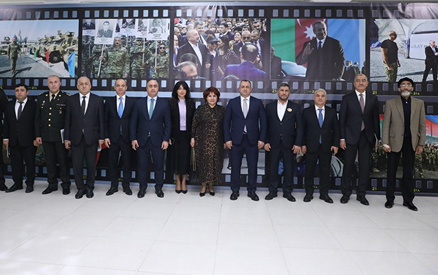 Daha sonra Mədəniyyət Nazirliyinin və Azərbaycan Fotoqraflar Birliyinin təşkilatçılığı ilə keçirilən “Zəfərin ruhu” adlı fotosərgiyə baxış keçirilib. Qeyd edək ki, sərgidə nümayiş olunan əsərlər Azərbaycan Ordusunun şücaətini, xalqımıza bəxş etdiyi əbədi Zəfər ruhunu, həmçinin işğaldan azad edilmiş torpaqlarımızda aparılan böyük quruculuq və dirçəliş prosesini, o cümlədən Qarabağ təbiətinin füsunkar gözəlliklərini rəssam və fotoqrafların gözü ilə əks etdirir.