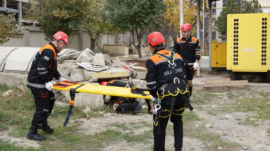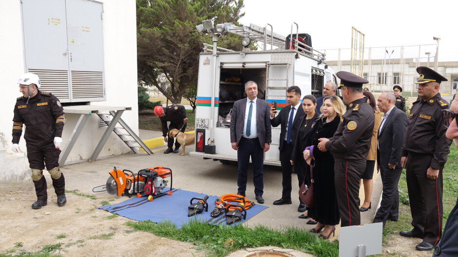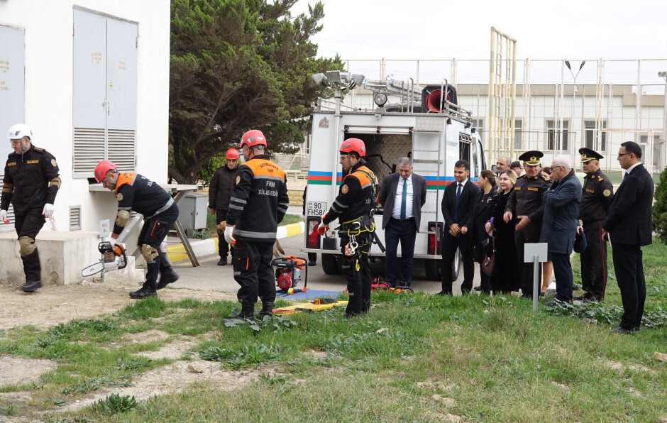 Şura üzvləri, həmçinin Xidmətin inzibatı binasının həyətində şəxsi heyətin təlim-məşq prosesini izləyiblər. Belə ki, xilasedicilər tərəfindən “dağlıq ərazidə köməksiz vəziyyətdə qalmış zərərçəkmişin” xüsusi alpinist avadanlığı ilə “xilas edilməsi”, “çətin keçilən zonalarda itkin düşmüş şəxslərin” axtarışı, “qapalı və zərərli mühitdə” xilasetmə əməliyyatı, şərti zəlzələ və uçqun zamanı “dağıntılar altında qalanların xilas edilərək” təxliyəsi, xüsusi mexaniki qurğular və müasir axtarış cihazlarının tətbiqi, xüsusi təlim görmüş itlərin iştirakı ilə axtarış-xilasetmə əməliyyatı nümayiş olunub. Şura üzvlərinə, həmçnin real əməliyyatlarda istifadə olunan taktiki yanaşmalar, təhlükəsizlik protokolları və heyətin koordinasiya qaydaları izah edilib.