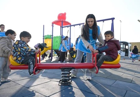 Daha sonra Leyla Əliyeva parkdakı uşaqlara müxtəlif oyuncaqlar hədiyyə edib, onlarla birlikdə xatirə şəkilləri çəkdirib.