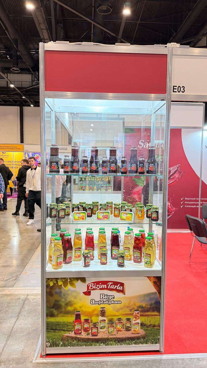 Sərgidə holdinqə məxsus müxtəlif zavod və fabriklərdə istehsal olunan konservləşdirilmiş məhsullar, içkilər, kompotlar, limonadlar, nar şirəsi, turşu məhsulları, mürəbbələr və digər qida çeşidləri nümayiş olunur. Stendimizdə məhsulların təqdimatı ilə yanaşı, dequstasiya da həyata keçirilir ki, bu da ziyarətçilərə Azərbaycan brendlərinin keyfiyyətini birbaşa qiymətləndirmək imkanı verir.