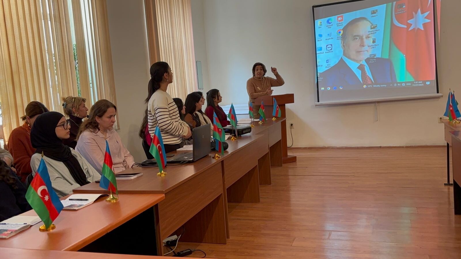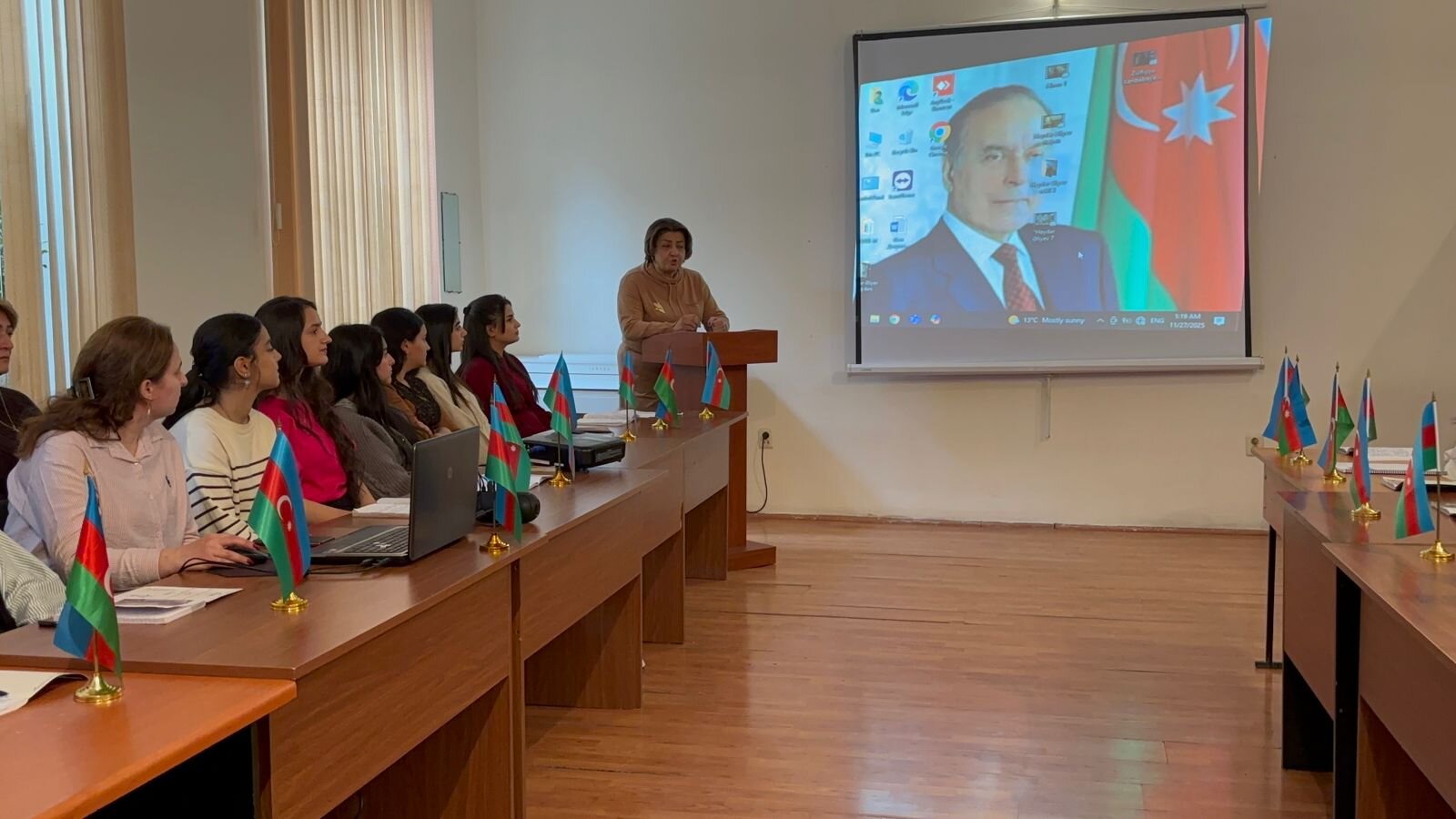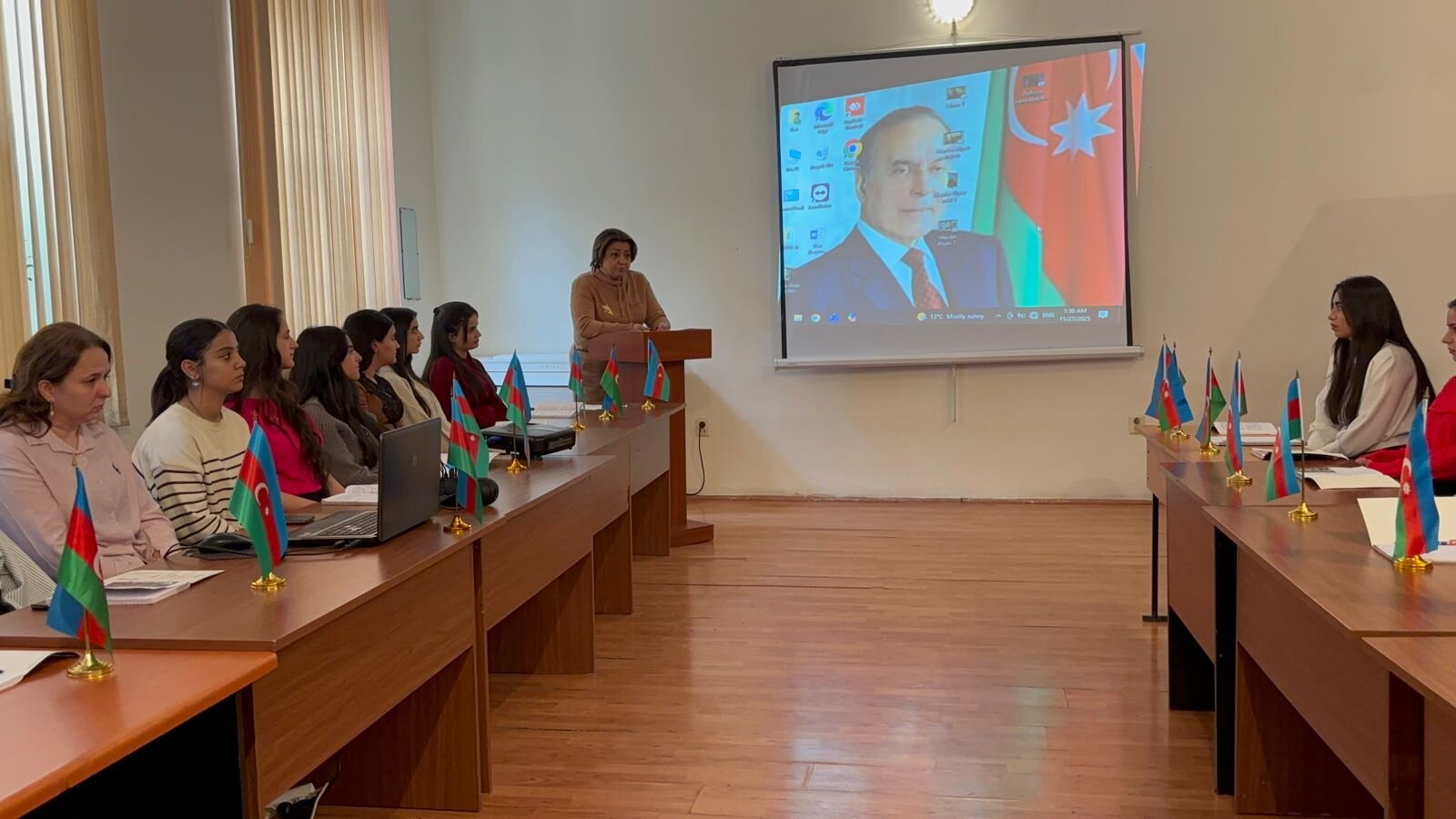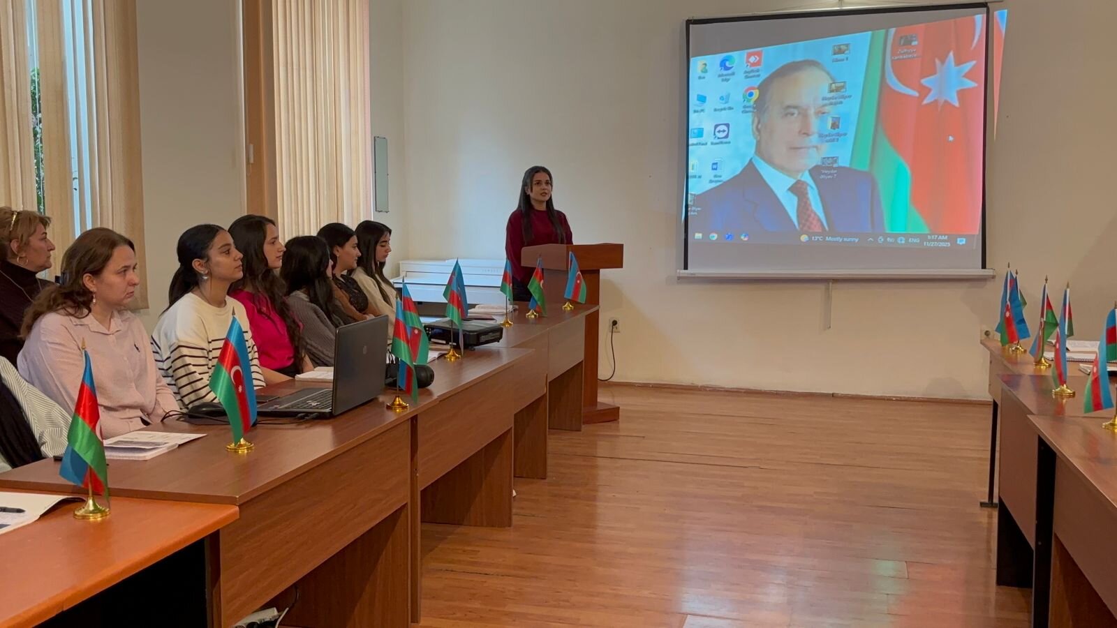 Publika.az xəbər verir ki, kollecin müəllimi Könül Hüseynova Ulu Öndər Heydər Əliyevin həyat və yaradıcılığı barədə geniş məlumat verib və açıq dərsin məhz Ümummilli liderə həsr edilməsinin vacibliyini diqqətə çatdırıb.