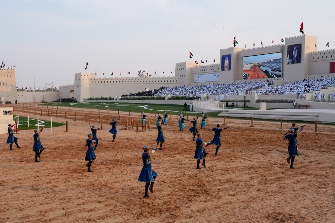 Publika.az xəbər verir ki, BƏƏ-nin rəsmi dəvəti ilə bu mərasimdə iştirak edən Azərbaycan Respublikası Dövlət Sərhəd Xidmətinin süvarilər dəstəsi, milli rəqs qrupu və orkestrin birgə çıxışı Azərbaycan mədəni irsinin zənginliyini və xalqımızın qədim ənənələrini bütün dünyaya nümayiş etdirib. Qarabağ atlarının nəcib duruşu, rəqs qrupunun ahəngdar kompozisiyaları və orkestrin canlı ifası tədbirin atmosferinə unudulmaz rəng qatıb.