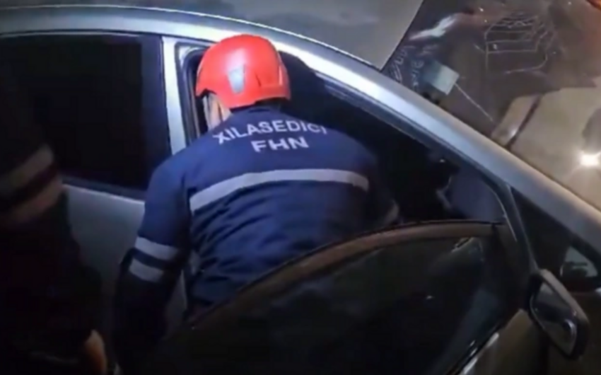 Avtomobildə sıxılı vəziyyətdə qalan şəxs xilas edildi - VİDEO
