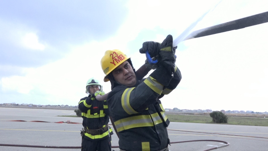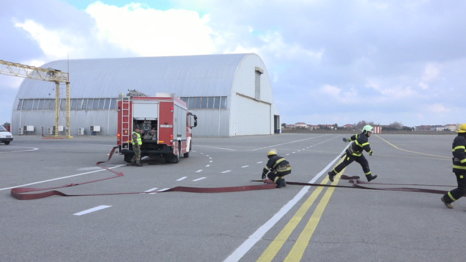 Daha sonra tədbirin praktiki hissəsinə start verilib. Praktiki hissədə şərti yanğın zamanı “Həyəcan” siqnalı verildikdən sonra Hava limanının anqar sahəsində “yanğın” baş vermiş nəqliyyat vasitəsi təlimata uyğun olaraq, bərk qoşqu ilə kənarlaşdırılaraq “yanğın”ın ətrafa yayılmasının qarşısı alınıb. Yanğınsöndürmə bölmələri operativ qaydada hadisə yerinə çataraq “yanğınla mübarizə” tədbirlərini icra ediblər.