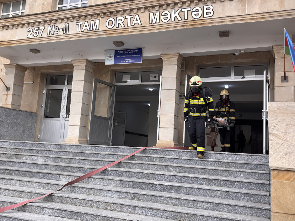 Fövqəladə Hallar Nazirliyinin Dövlət Yanğın Nəzarəti və Dövlət Yanğından Mühafizə xidmətlərinin birgə təşkilatçılığı ilə Bakı şəhəri, Xətai rayonu ərazisində yerləşən 257 nömrəli tam orta məktəbdə “Fövqəladə hallar zamanı davranış qaydaları və təxliyə” mövzusunda təlim keçirilib.