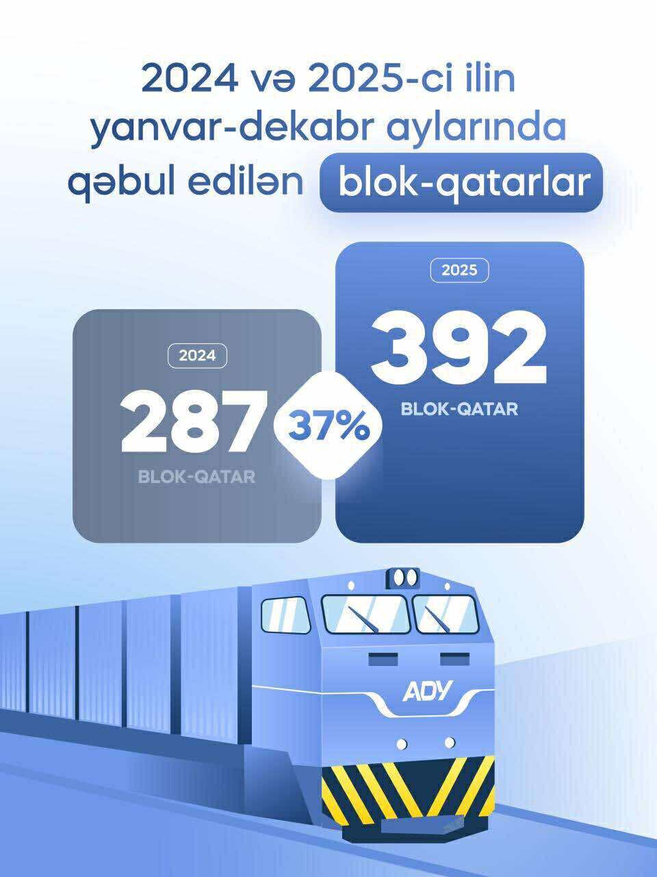 Bildirilib ki, bu, 2024-cü ilin göstəricisi (287 blok-qatar) ilə müqayisədə 37% artım deməkdir.