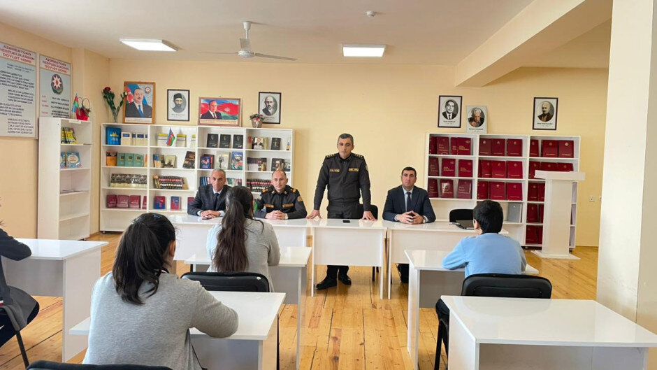 Belə ki, FHN-in Dövlət Yanğın Nəzarəti, Kiçikhəcmli Gəmilərə Nəzarət və Sularda Xilasetmə Dövlət xidmətlərinin mütəxəssislərinin də iştirakı ilə Sumqayıt Regional Mərkəzi (RM) tərəfindən Sumqayıt Olimpiya İdman Kompleksində, Sumqayıt şəhər 5 nömrəli, 8 nömrəli, 27 nömrəli, Abşeron rayonu, Mehdiabad qəsəbə 2 nömrəli və Ceyranbatan qəsəbə 1 nömrəli tam orta məktəblərində, Gəncə RM tərəfindən Gəncə şəhər A.S.Puşkin adına 9 nömrəli, 7 nömrəli, Ağstafa rayonu, A.Asimoğlu adına Zəlimxan kənd və Ağstafa şəhər S.Şükürova adına 3 saylı tam orta məktəblərində, Muğan RM tərəfindən Neftçala şəhər E.Həbibov adına 4 nömrəli tam orta məktəbində, Qarabağ RM tərəfindən Bərdə şəhər 3 nömrəli, Ağdam rayonu, Yeni İmamqulubəyli qəsəbəsi 135 nömrəli tam orta məktəblərində, Aran RM tərəfindən Kürdəmir rayonu, Qacar Sadıqov adına Mollakənd kənd və Zərdab rayonu, Sarıqaya tam orta məktəblərində, Cənub RM tərəfindən Lənkəran şəhər S.Kazımbəyov adına 6 nömrəli tam orta məktəb-liseydə və R.İbadov adına Cil kənd tam orta məktəbində, Şimal-qərb RM tərəfindən Qəbələ şəhər 1 nömrəli uşaq bağçasında, Şimal RM tərəfindən Qusar rayonu, Çaqarqışlaq kənd tam orta məktəbində maarifləndirmə tədbiriləri keçirilib.