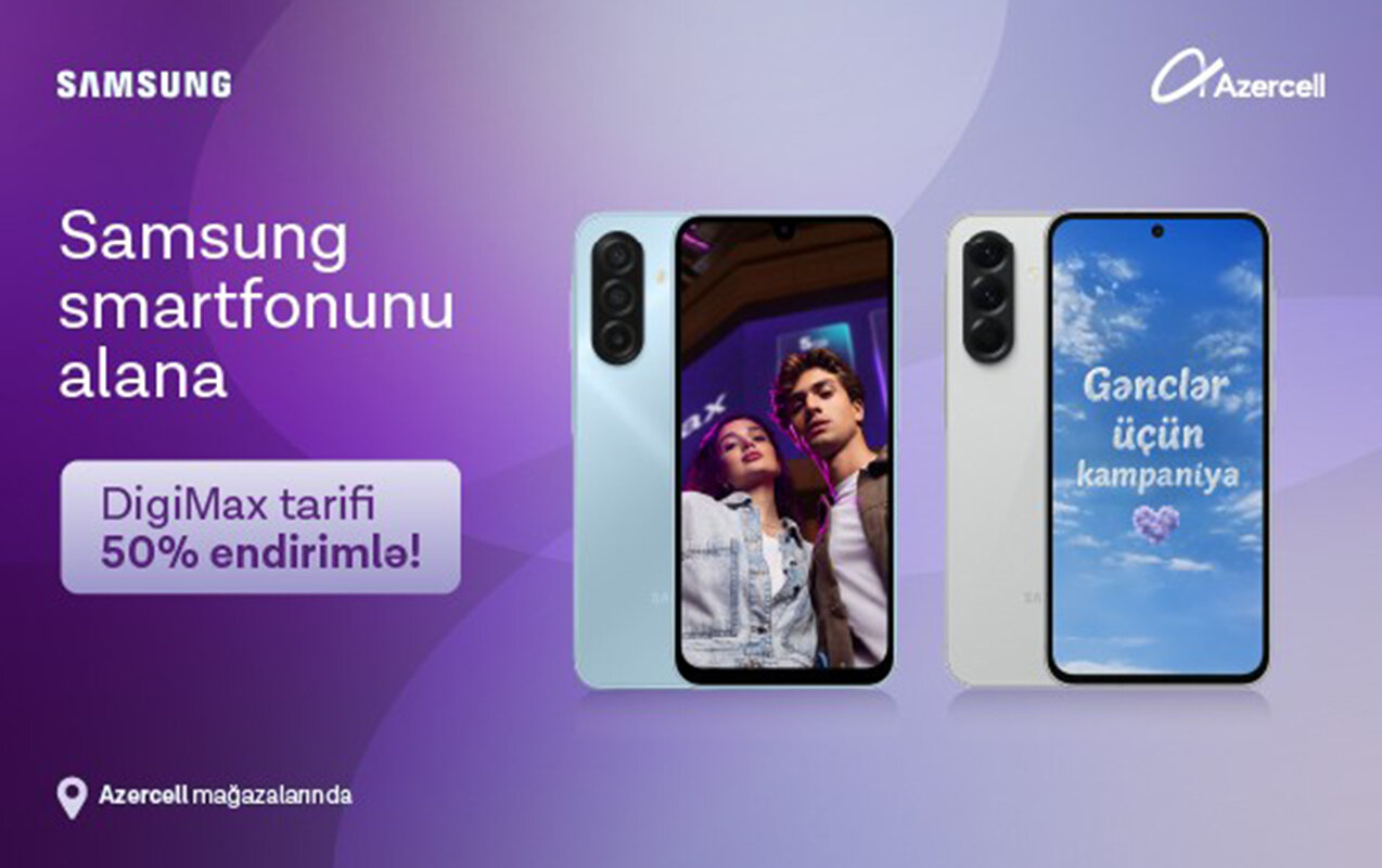 Kampaniya çərçivəsində “Samsung Galaxy A17” və “Samsung Galaxy A56” smartfonlarından birini alan müştərilər “DigiMax 5GB” və ya “DigiMax 10GB” tariflərindən 3 ay müddətinə 50% endirimlə yararlana biləcəklər.