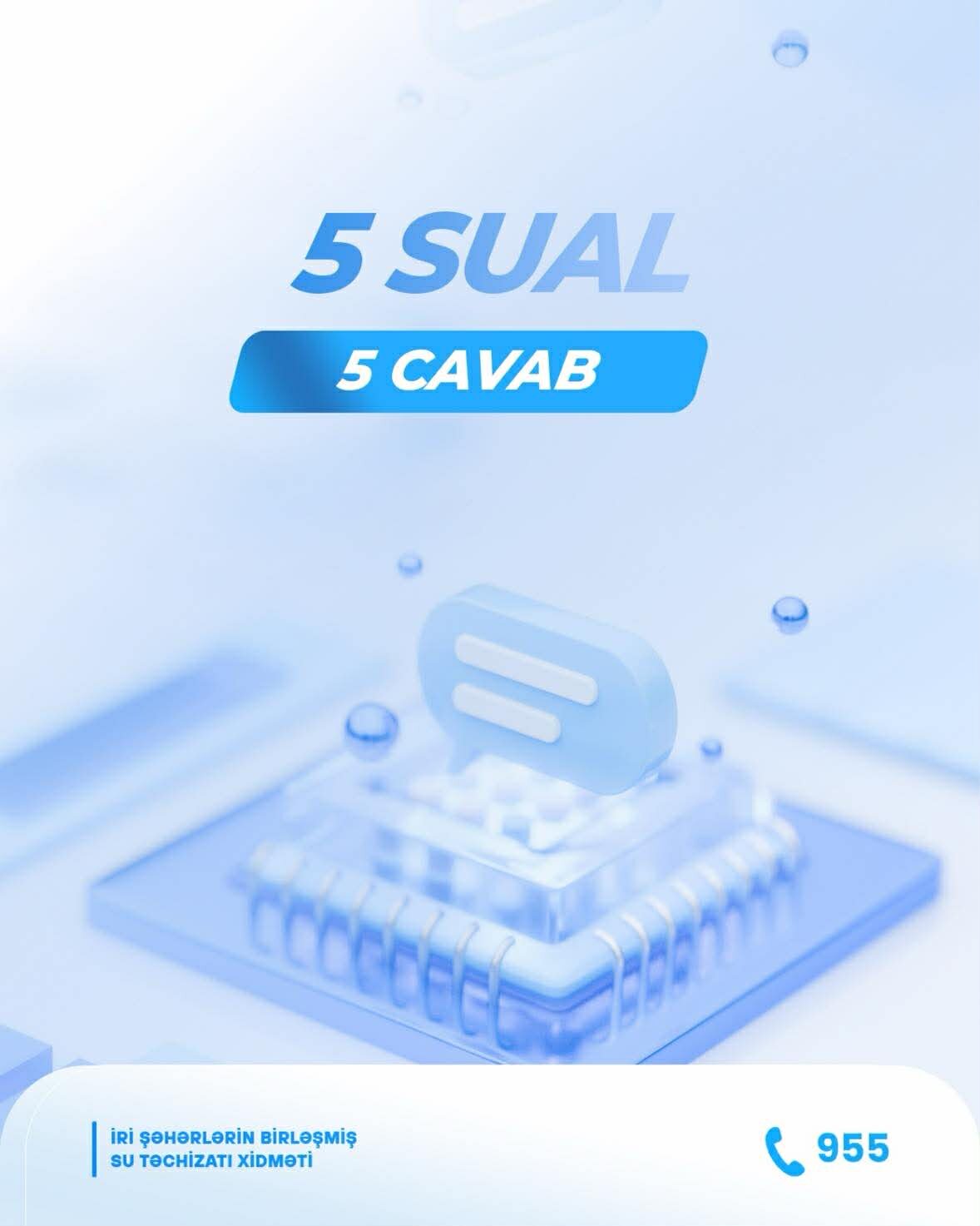 Publika.az xəbər verir ki, bu kimi suallar içərisində vətəndaşların tez-tez müraciət etdikləri mövzuları əhatə edənləri də var. ADSEA-nın İri Şəhərlərin Birləşmiş Su Təchizatı Xidməti həmin sualları və onların cavablarını mərhələli şəkildə təqdim edir.