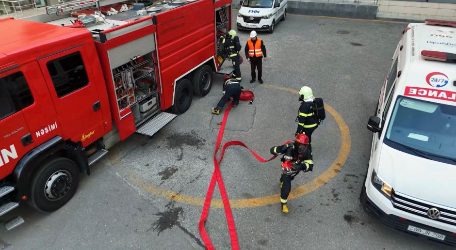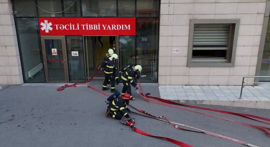 Təlimin praktiki hissəsində şərti yanğınla əlaqədar “Həyəcan” siqnalı verildikdən sonra Dövlət Yanğından Mühafizə Xidmətinin yanğından mühafizə bölmələri operativ qaydada “hadisə yerinə” çataraq, “yanğınla mübarizə” tədbirlərinə başlayıblar. Şərti yanğın baş vermiş səhiyyə müəssisəsində təxliyə planına uyğun olaraq vətəndaşların təhlükəsiz yerə təxliyəsi həyata keçirilib, şərti xəsarət almış şəxslərə “ilkin yardım göstərilib” və “yanğın qısa müddətdə söndürülüb”.