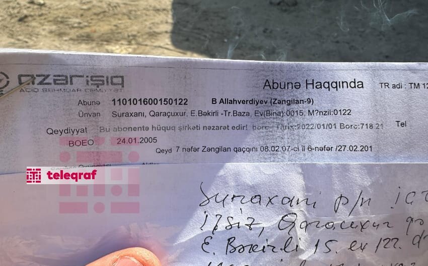 "Suyu sakinlər binaya çəkib. Qışda istilik sistemi olmadığından elektrik enerjisindən istifadə etmişik. Nəticədə də 10047 manat borc yaranıb. Mənzildən çıxarkən heç bir məişət tullantısı qoymamışam, o cümlədən söküntü işləri də aparmamışam".