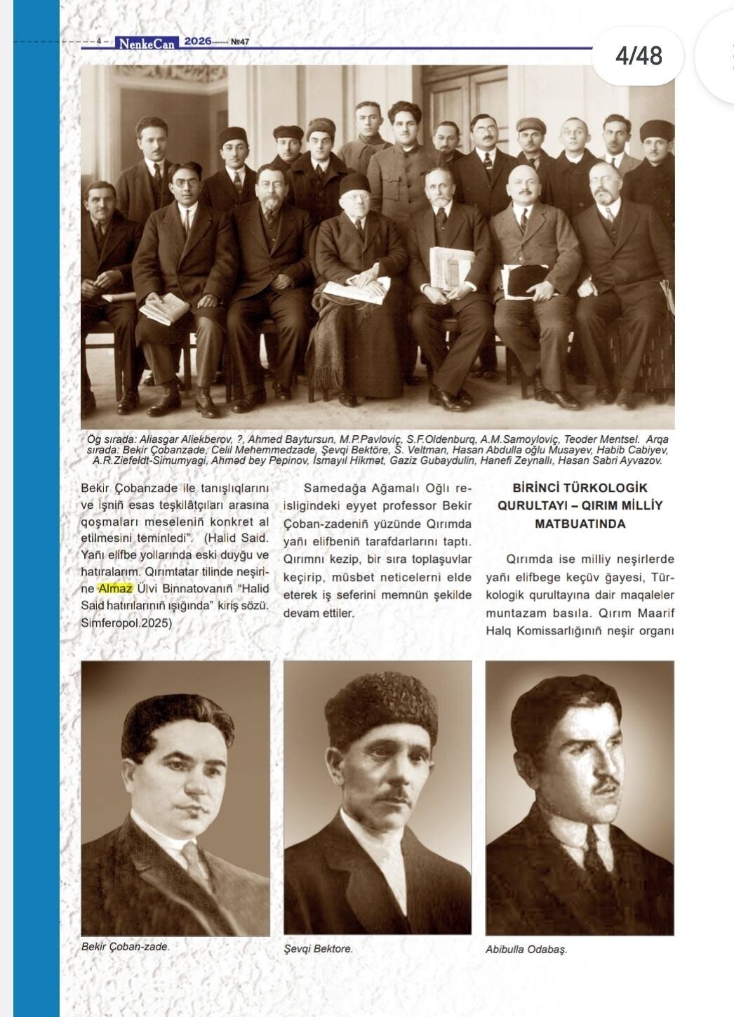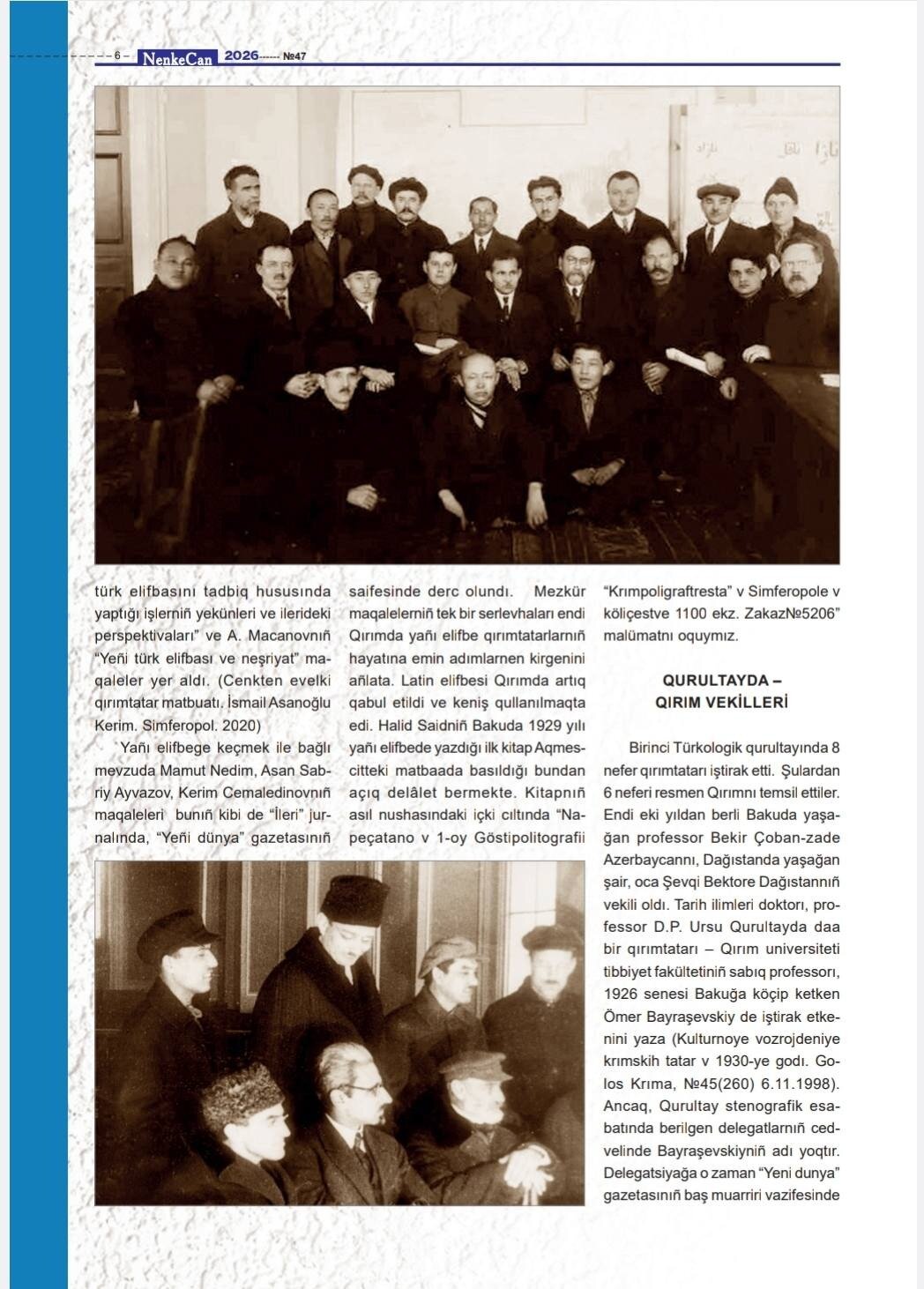 Krımda nəşr olunan Nenkecan jurnalının yeni sayı I Türkoloji Qurultayın 100 illiyinə həsr edilib.