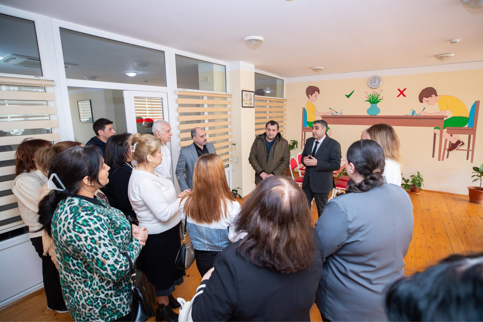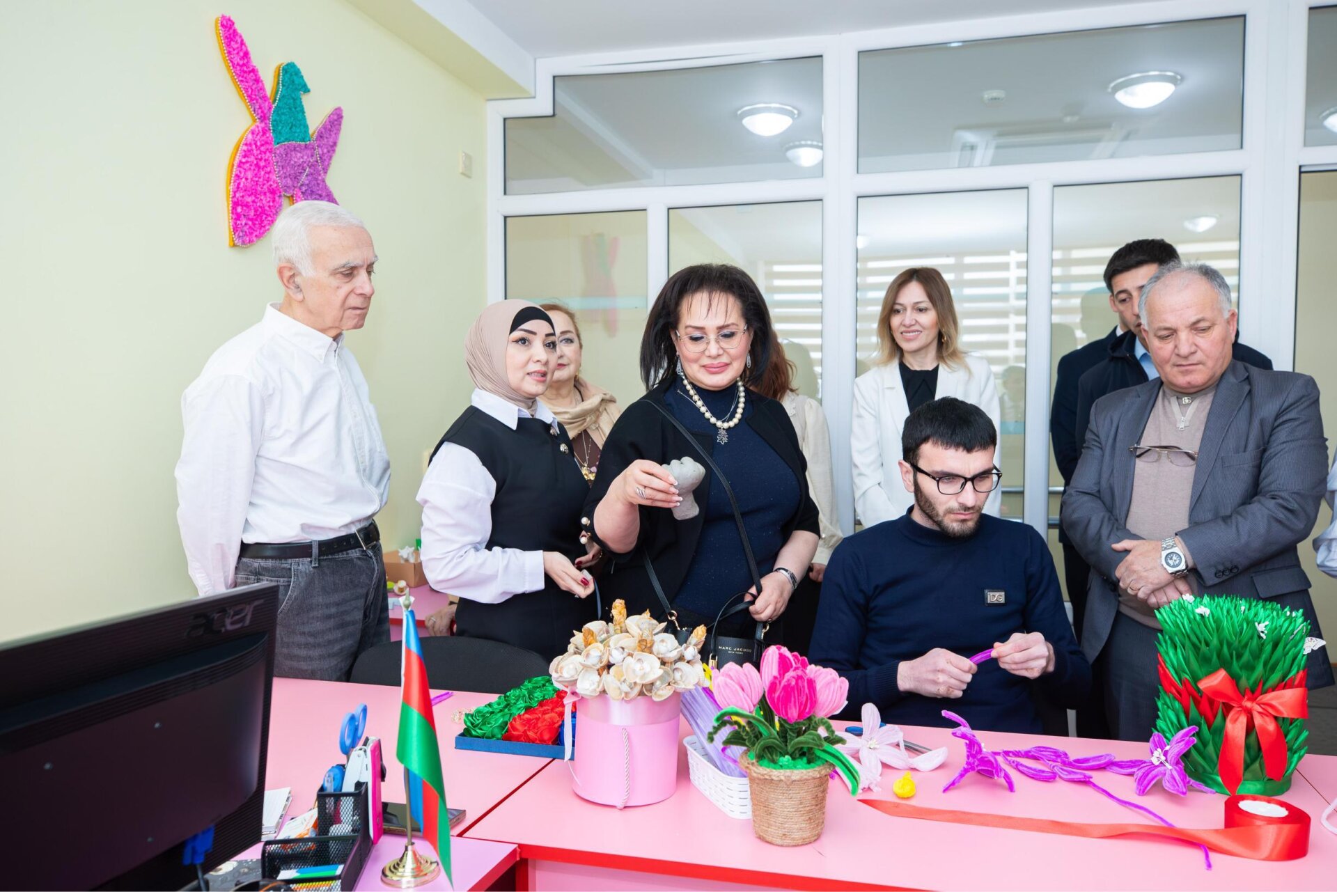 Qonaqlara məlumat verilib ki, benefisiarlarla brayl əlifbasının öyrədilməsi, əl ağacından düzgün istifadə vərdişlərinin formalaşdırılması, eləcə də ayaq hissiyyatının inkişaf etdirilməsi istiqamətində məqsədyönlü iş aparılır. Hər bir sakinə fərdi inkişaf proqramına uyğun xidmət göstərilir.