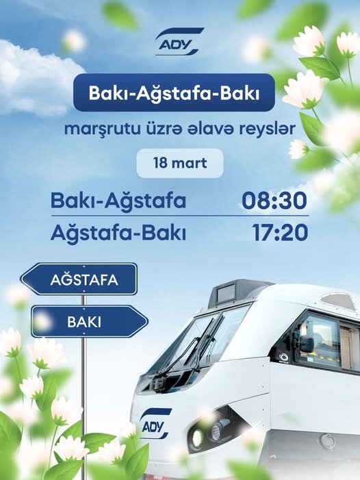 “Azərbaycan Dəmir Yolları” (ADY) sərnişin tələbatını qarşılamaq məqsədilə Bakı–Ağstafa–Bakı marşrutu üzrə əlavə qatar reysləri təyin edib.