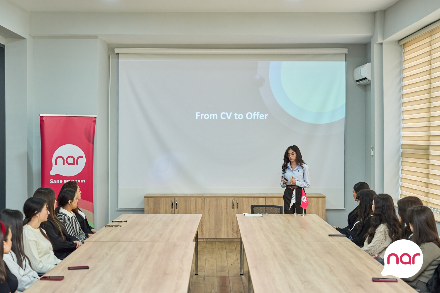 "Nar"ın İnsan qaynaqları departamentinin peşəkar heyəti tərəfindən hazırlanan təlim proqramı texniki ixtisaslar üzrə təhsil alan tələbələrə rabitə sahəsi üzrə karyera perspektivləri, işə qəbul prosesi, real iş həyatında tələb olunan bacarıqlar barədə bilikləri əhatə edir. Semestr ərzində iki mərhələdə keçiriləcək təlim ümumilikdə 40 iştirakçını əhatə edir.