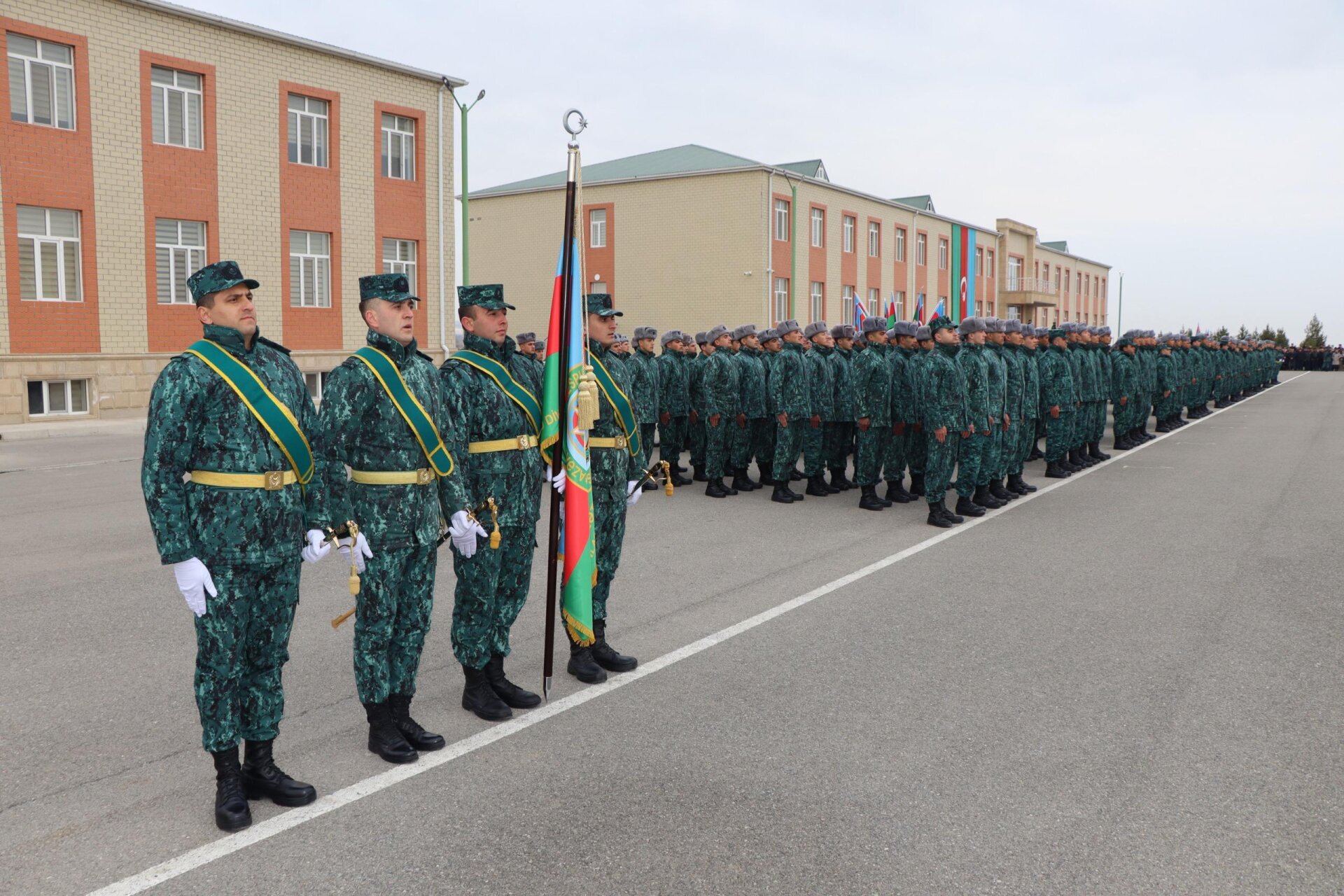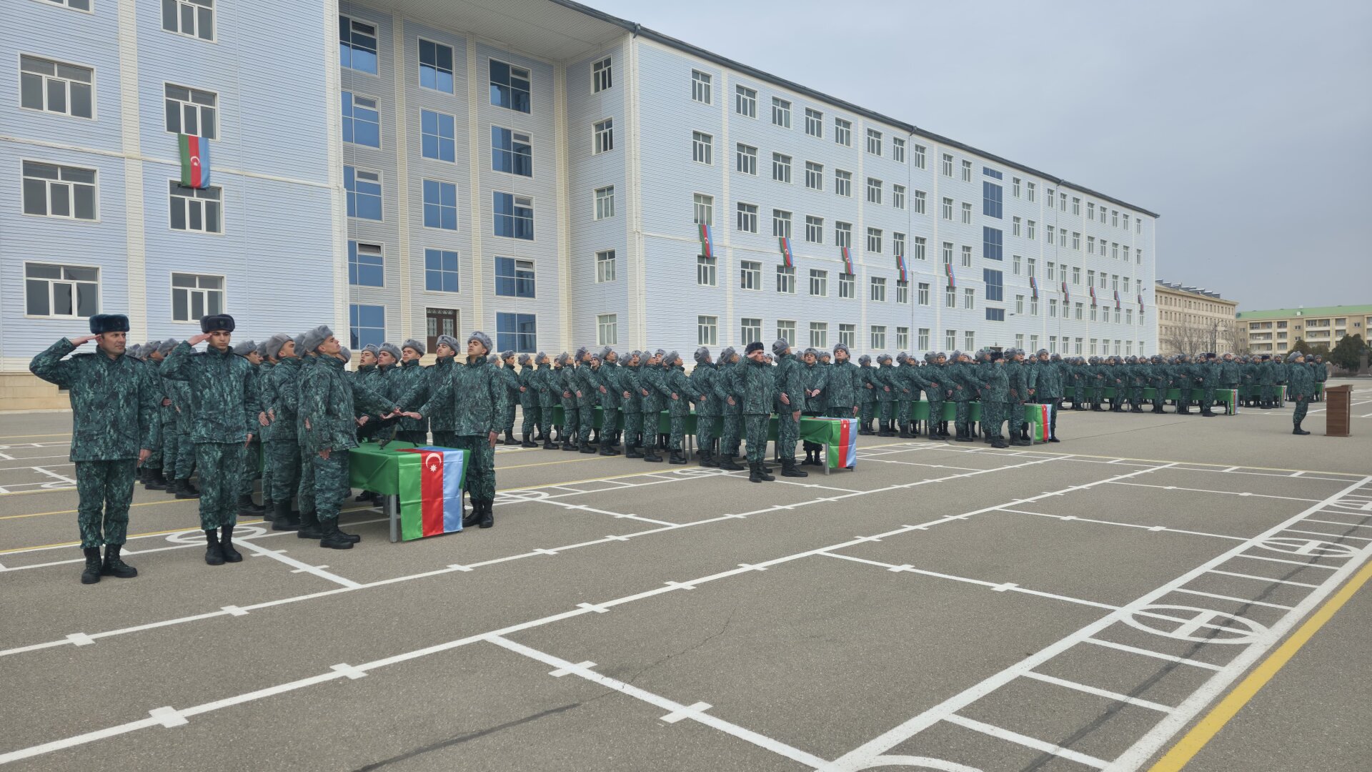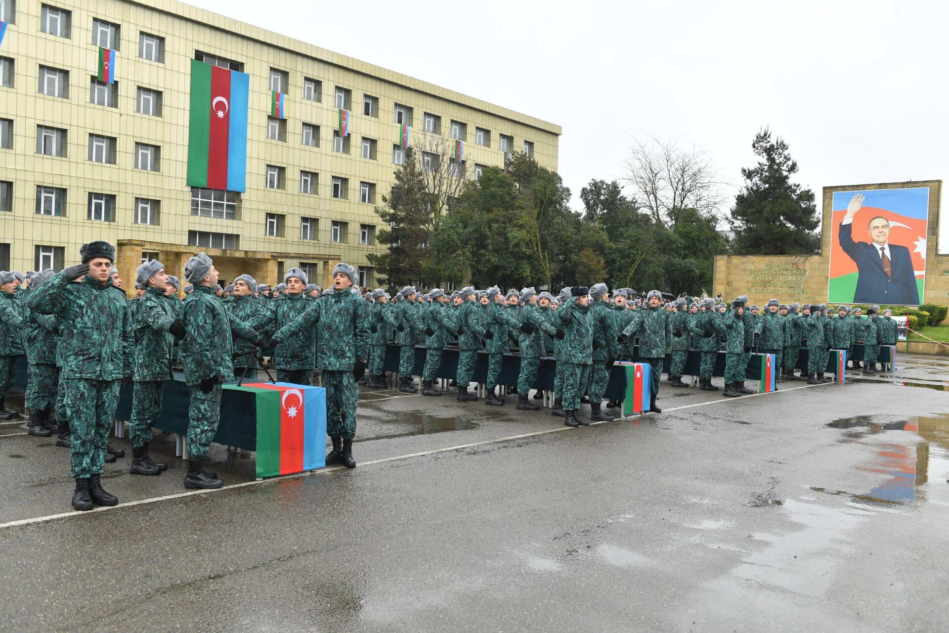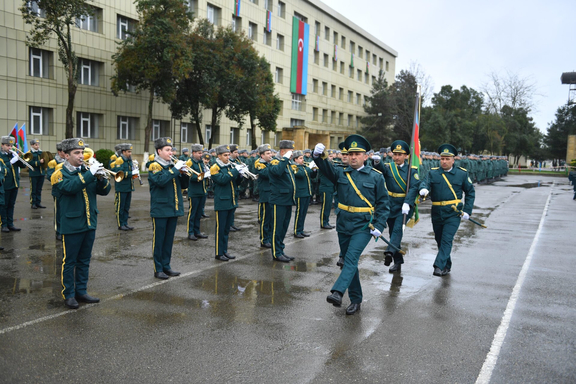 Mərasimin rəsmi hissəsi şəxsi heyətin təntənəli marşla tribuna önündən keçidi ilə başa çatıb.
