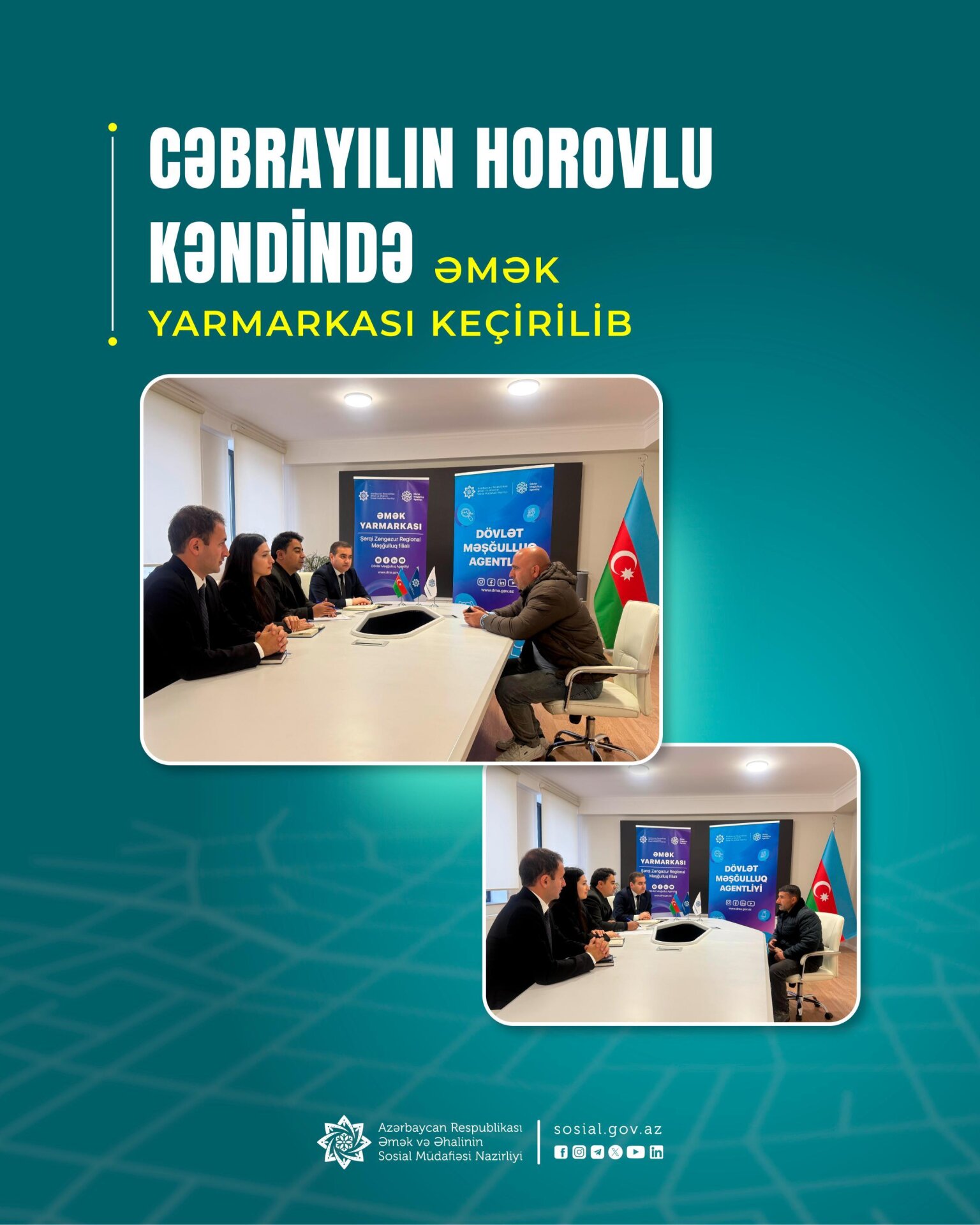 Əmək və Əhalinin Sosial Müdafiəsi Nazirliyinin tabeliyində Dövlət Məşğulluq Agentliyi və “Azfen” MMC-nin birgə təşkilatçılığı ilə Cəbrayıl rayonunun Horovlu kəndində əmək yarmarkası keçirilib.