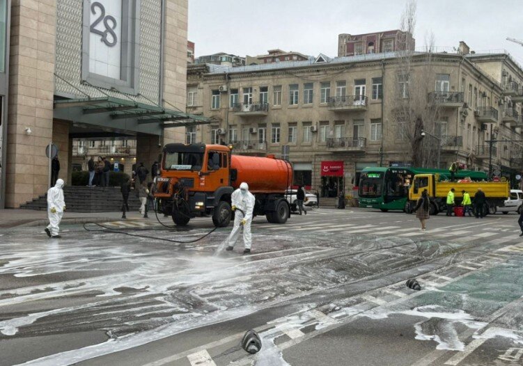 Bildirilib ki, səhər saatlarından etibarən Bakı Şəhər İcra Hakimiyyətinin kommunal təsərrüfat xidmətlərinin texnikası tərəfindən şəhərin 555 əsas küçə, prospekt və məhəllədaxili yolların yuyucu maddələrlə yuyulması təmin edilib.