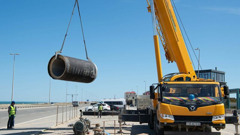 Azərbaycan Dövlət Su Ehtiyatları Agentliyinin İri Şəhərlərin Birləşmiş Su Təchizatı Xidməti və Tikilməkdə Olan Obyektlərin Müdiriyyəti Bakı şəhəri və Abşeron rayonunda yeni kanalizasiya kollektorları və tullantı sutəmizləyici qurğuların tikintisi layihələrini davam etdirir.