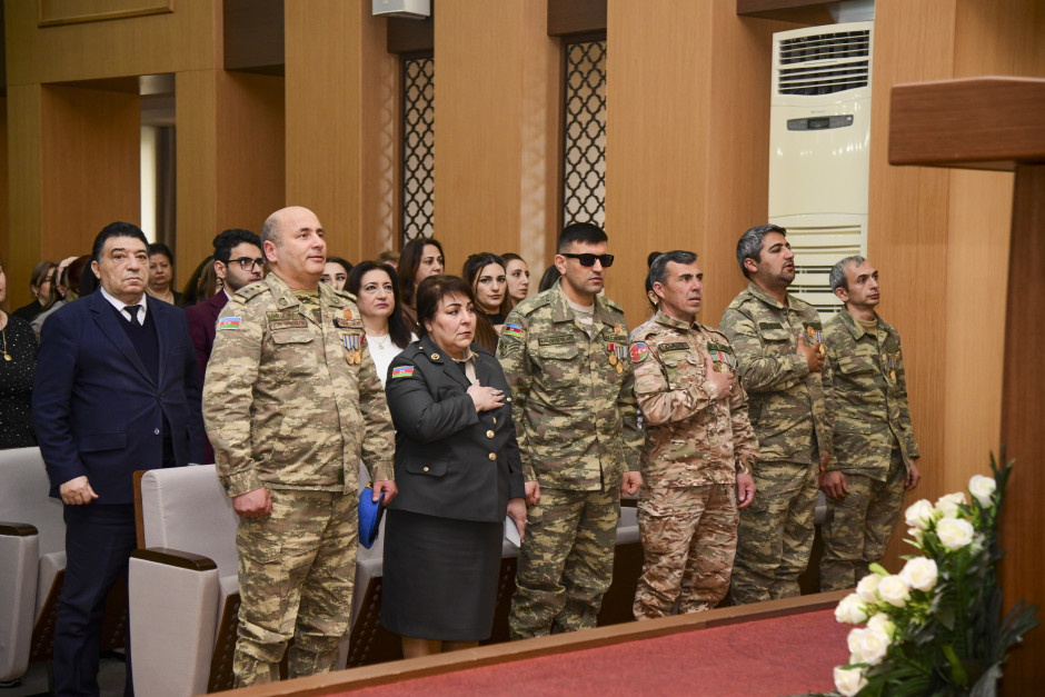 Tədbirin bədii hissəsində əməkdar artist Gülər Nəbiyeva və şairə Adilə Nəzər vətənpərvərlik mövzusunda şeirlər oxuyub.