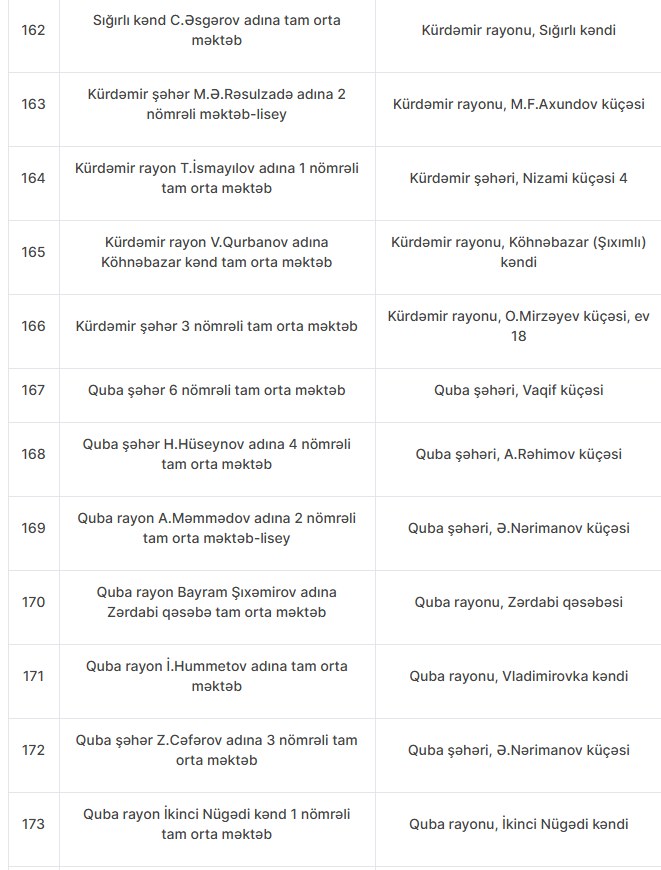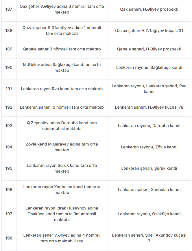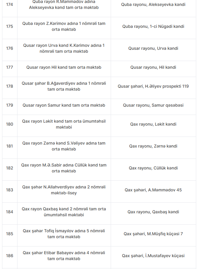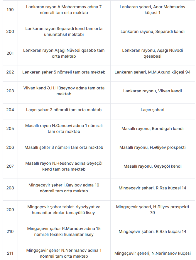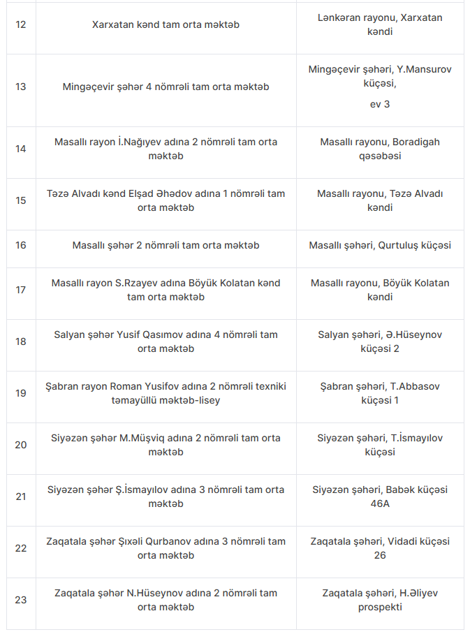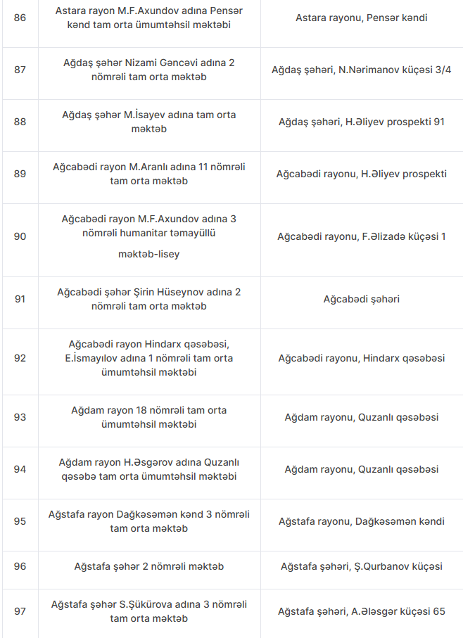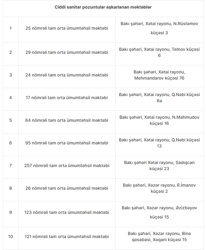 Nöqsanlar aşkarlanan məktəblərin siyahısını təqdim edirik: