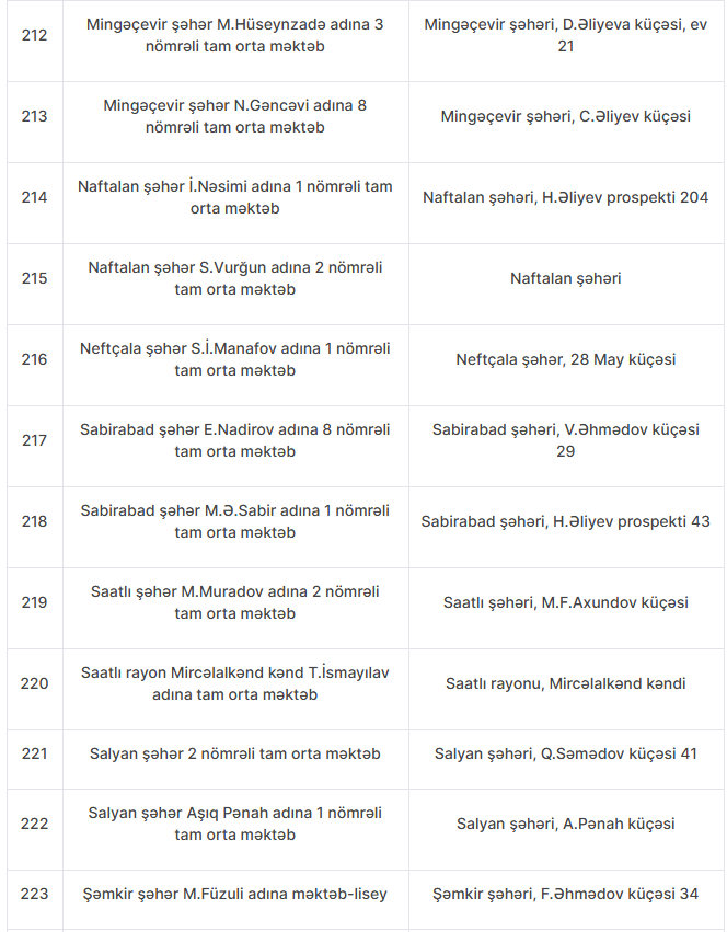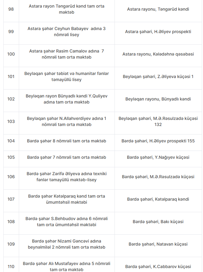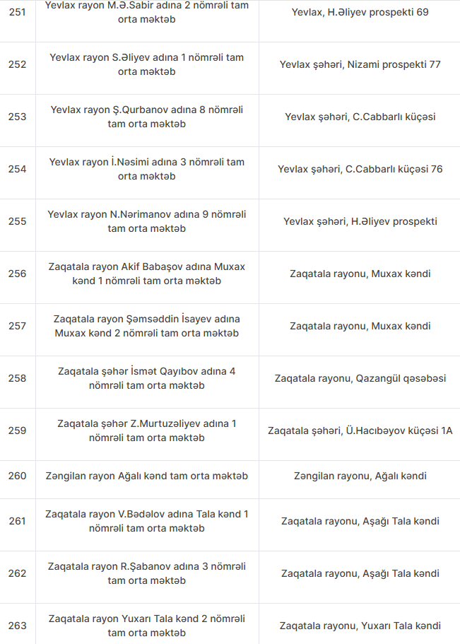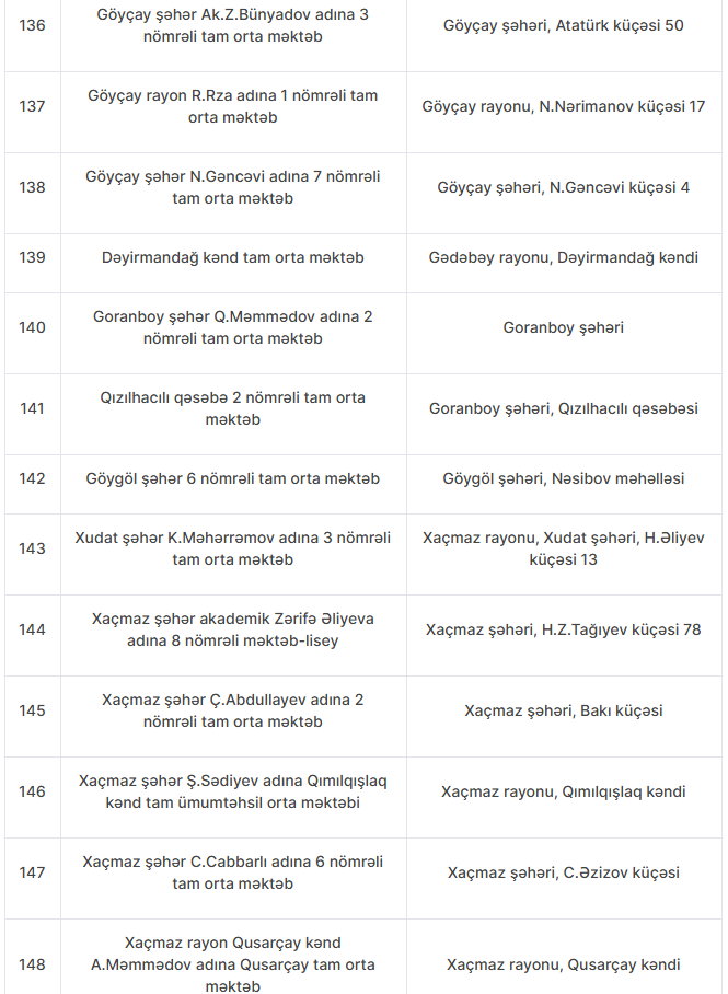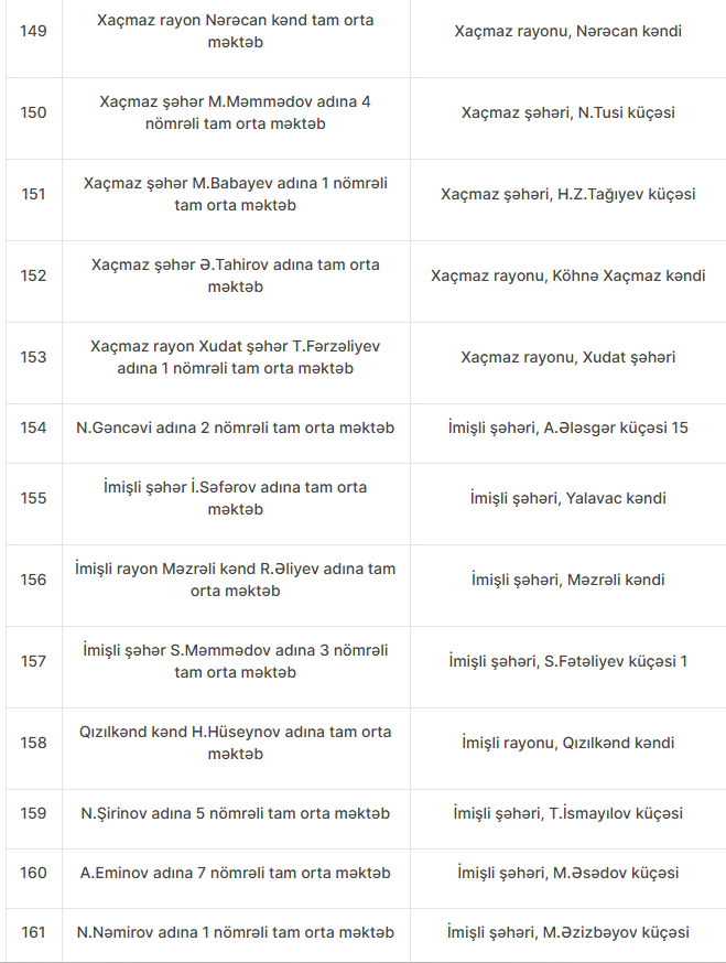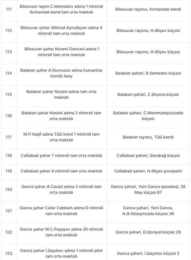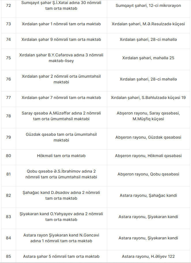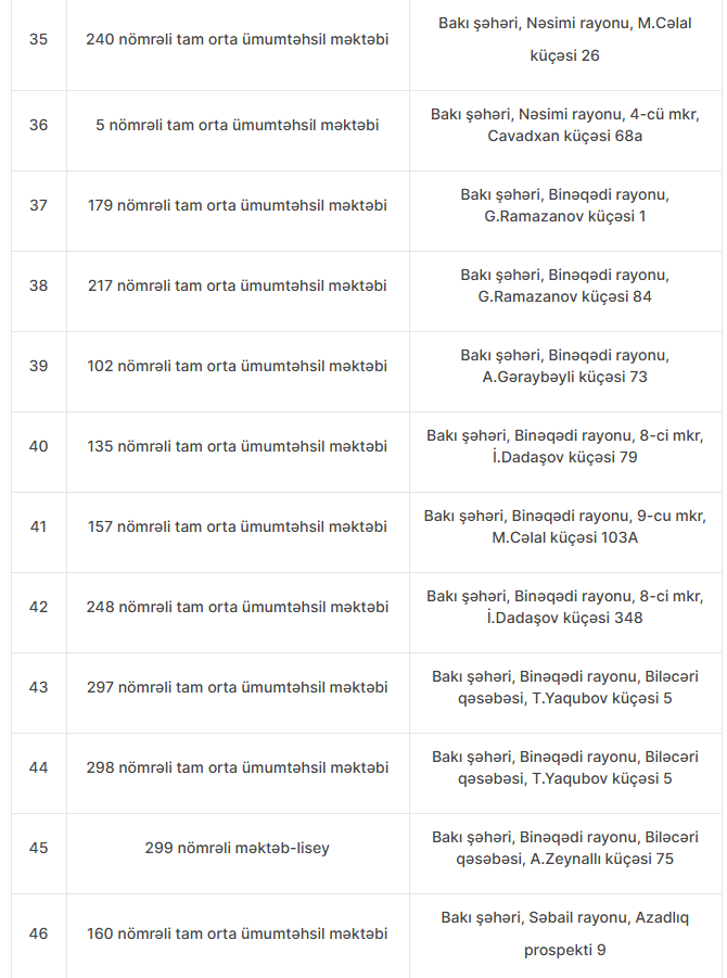 Nöqsanlar aşkarlanan məktəblərin siyahısını təqdim edirik: