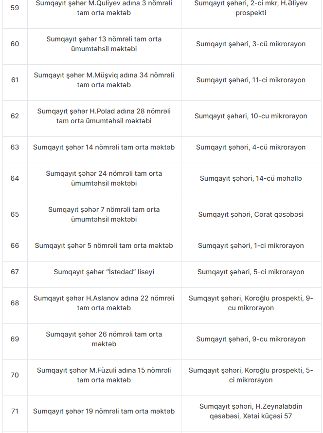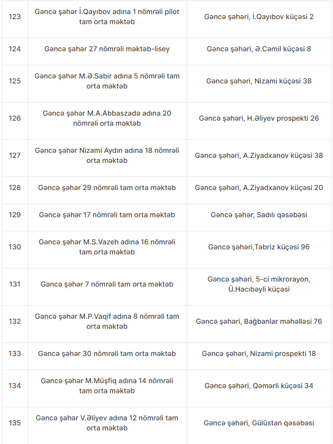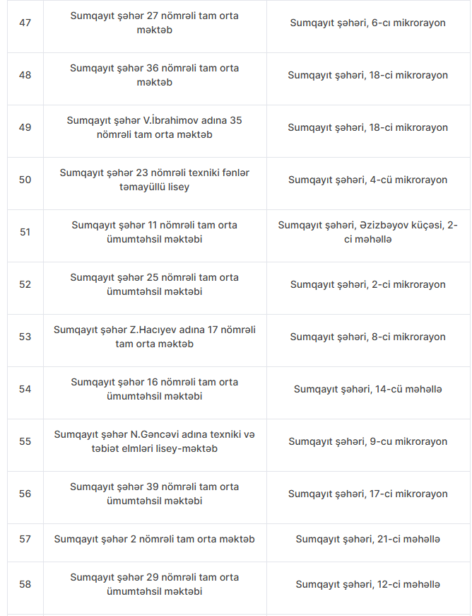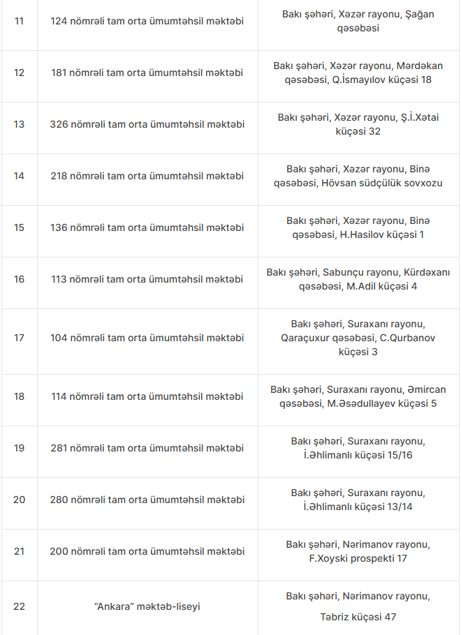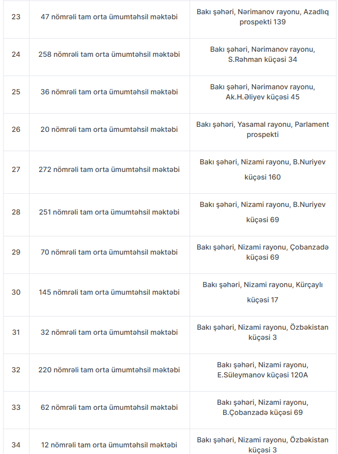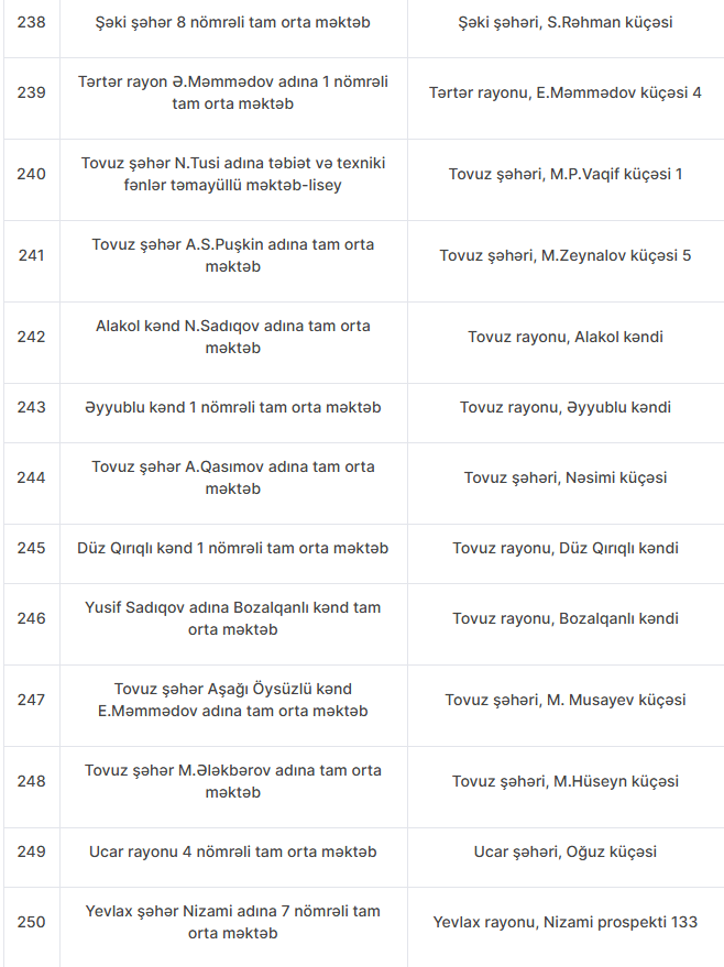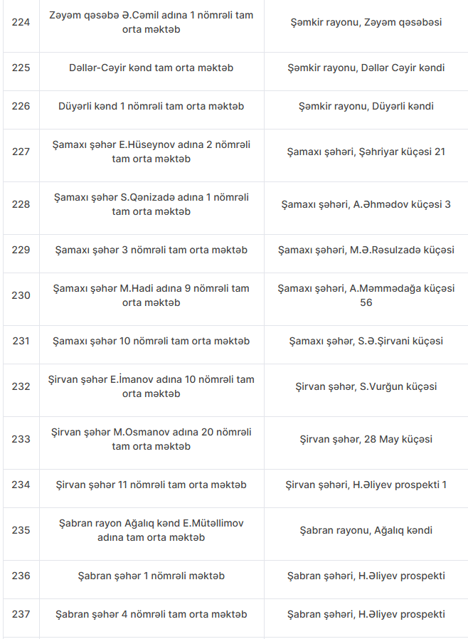 Nöqsanlar aşkarlanan məktəblərin siyahısını təqdim edirik: