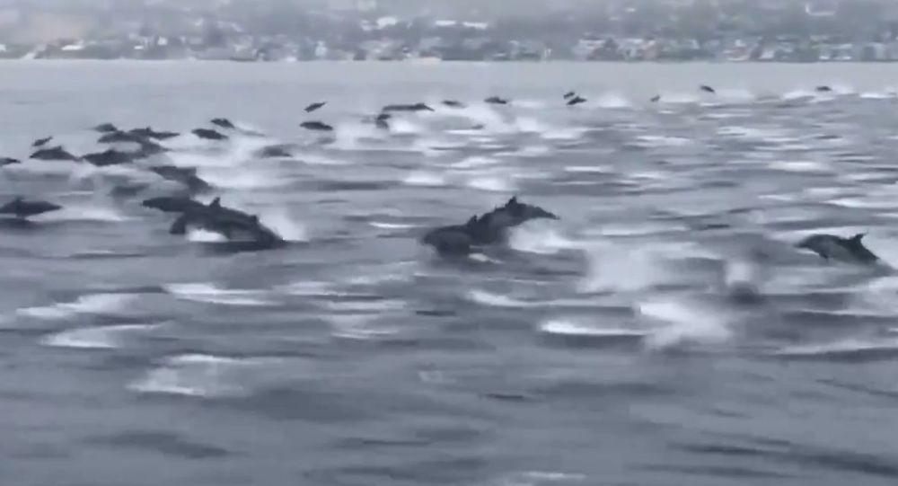 Şou göstərən delfin sürüsü insanların diqqətini çəkib. Videonu lentə alan şəxs delfin sürüsünün 25 dəqiqə qayıqlarla birgə hərəkət etdiyini və sahilə qədər gəlib çıxdıqlarını deyib: “Möhtəşəm mənzərə idi. Eyni zamanda, okeanın canlı olduğunu və belə sehrli anları görmək üçün təbiəti qorumağımızın lazım olduğunu xatırladır. Onları saatlarla izləmək mümkündür”.
