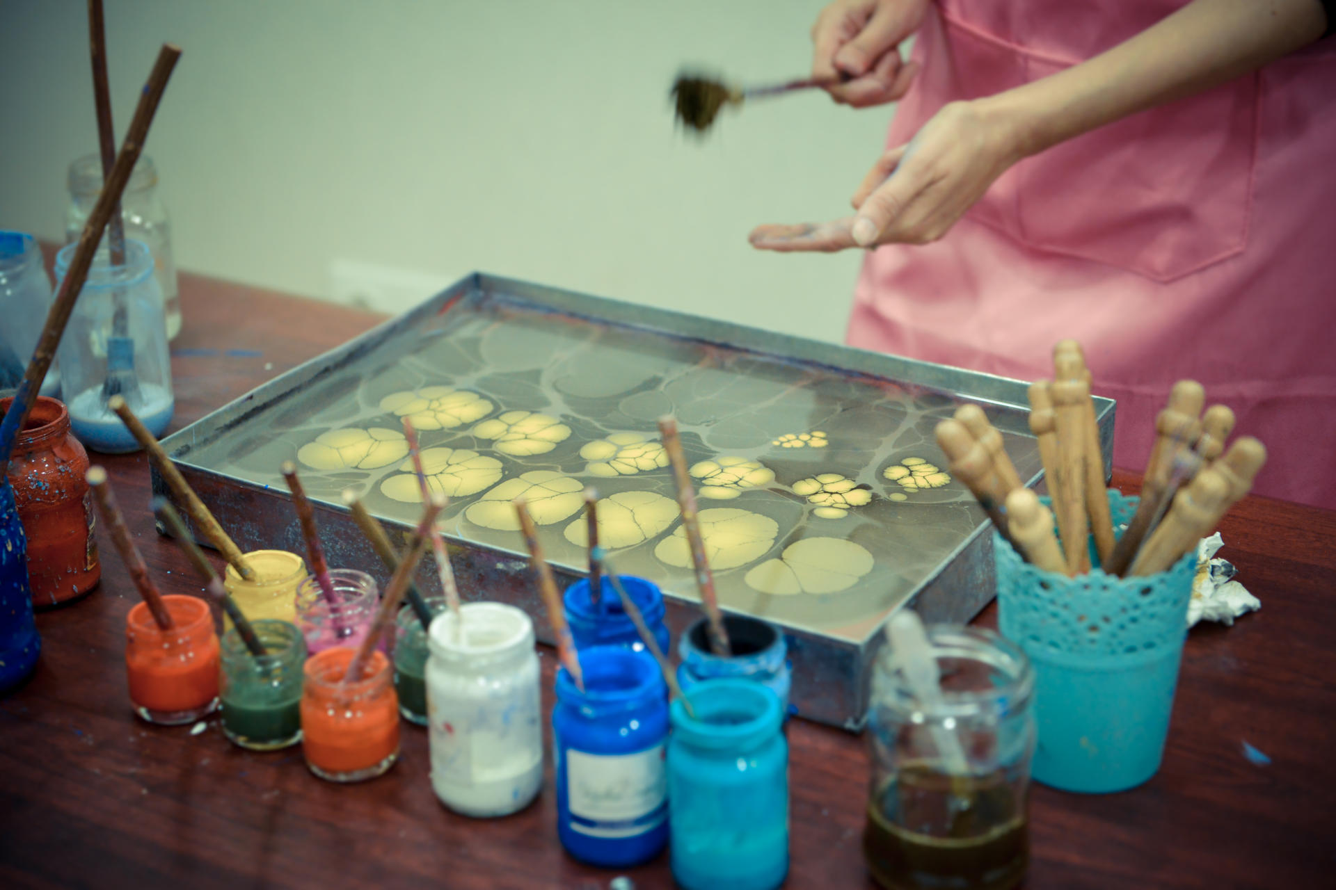 - Bəli ebru həm də terapiyadır. Hətta autizmli uşaqlar üçün ideal müalicə də saya bilərik. Çünki bizi suyun üzərində sabit saxlamaq, fikri cəm etmək onlarda yeni bacarıqlar formalaşdırır. Ümumiyyətlə bu sənəti çox sadə sadə qəbul etməyin. Ebruda kimya, riyaziyyat, fizika var. İstənilən yöndən baxsaq, ebru faydalı sənətdir. Çünki təxəyyül və məntiqin vəhdətindən yaranır. Onu unikal edən əsas cəhət də budur.